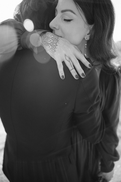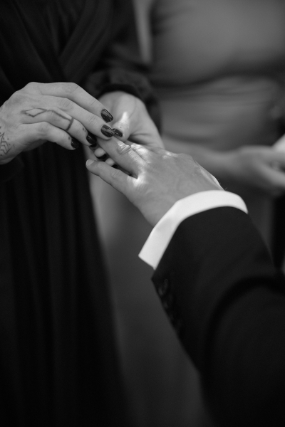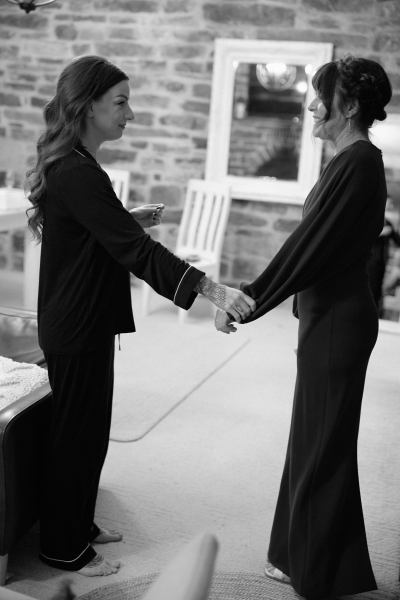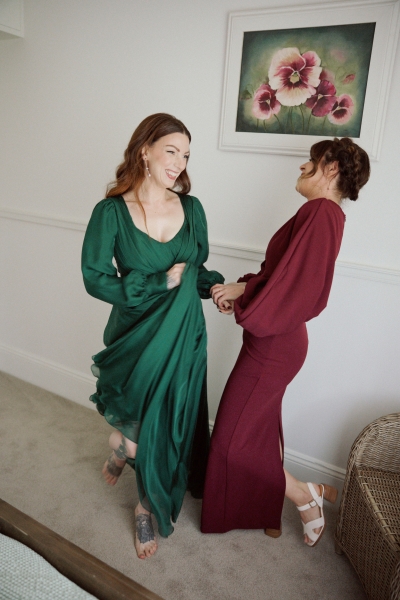 The last member of their small wedding party was Kate’s Woman of Honour: Rosie. “I’ve known my very dear friend Rosie since childhood – she and I have been through thick and thin together, so there was no question that I wished her to be there with me on the day. Rosie wore a beautiful, deep burgundy gown with bishop sleeves and a gathered front. We went through at least six dresses before landing on the final one. I gifted Rosie a pair of rose gold and lilac sapphire earrings that I had made as a thank-you / I love you.”