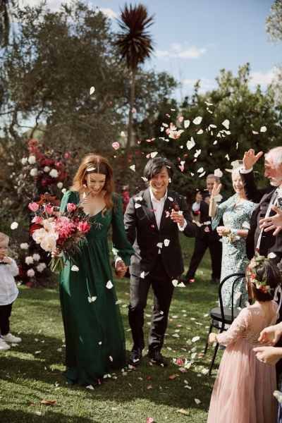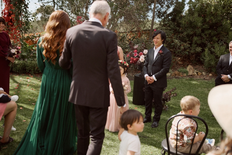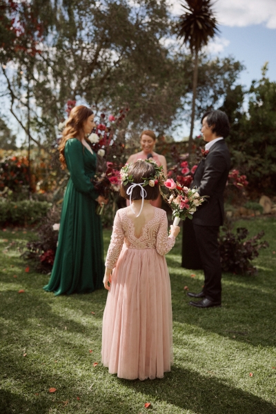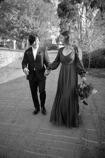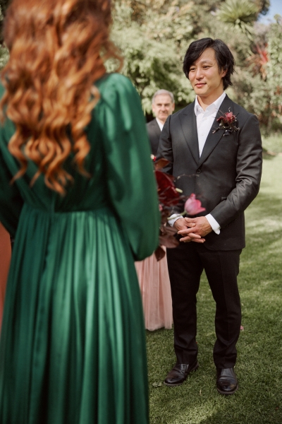 Small and sweet – those are the words Chan and Kate would use to describe their intimate ceremony. With only immediate family in attendance, their celebrant, Courtney from Love Made Legal, beautifully wove their story in a heartwarming tale. “I hadn’t planned for it to have any particular kind of feeling – I knew it would be emotional and heartfelt and didn’t want to interfere with that. We included a ‘warming of the rings’ ceremony, whereby our wedding rings were passed from person to person so they could imbue their love and well wishes – I really loved this detail, especially since we didn’t include any readings. My favourite part was reading our vows, where Chan and I had both unknowingly made reference to a significant saying in our lives, ‘A bird and a fish can fall in love, but where shall they live?'” Kate shared.