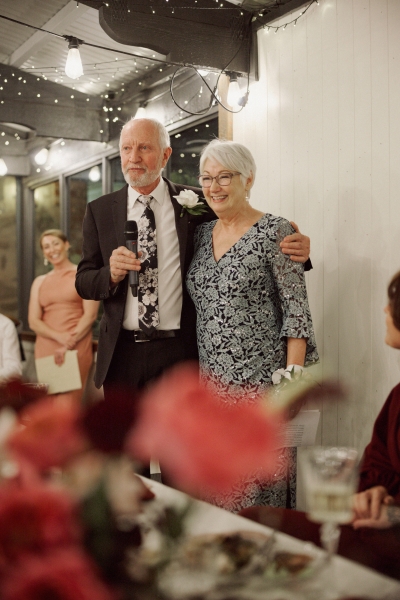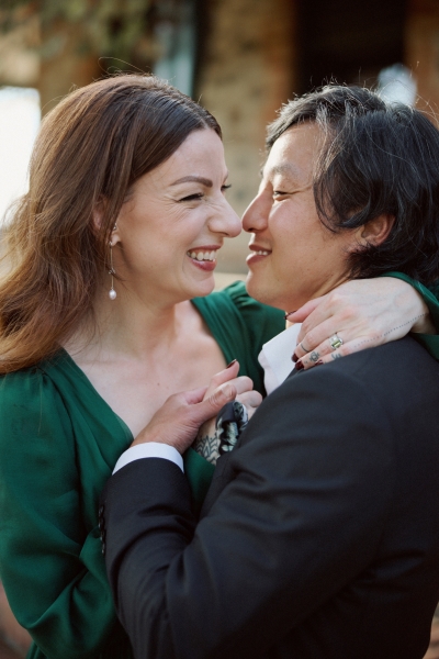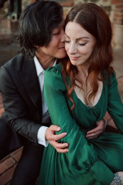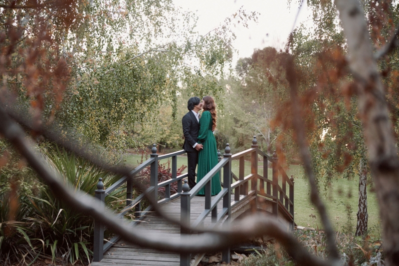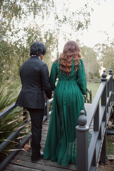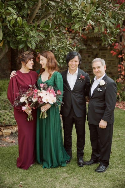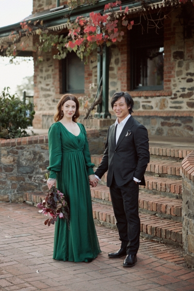 The first time Kate met Chan, he was teaching capoeira. She would never have guessed that, years later (after countless emails, long-distance conversations, and a slow-burning connection), he would be the man kneeling in the muddy winter earth of their backyard, asking her to marry him. Their story grew quietly over time, building through friendship into a love that has now spanned a decade of life, parenthood, and partnership. Their wedding at Hazelmere Homestead felt like stepping into an extension of that love story. Shaded in deep greens, rich burgundies, and moody dusk tones. With their friends and family gathered around, the day was beautifully captured by photographer and longtime friend Tomek Celarek.