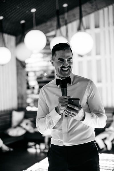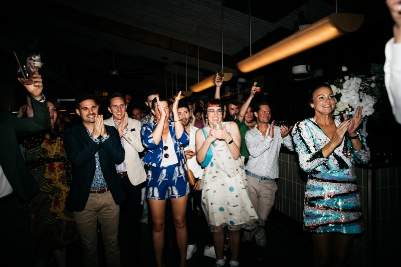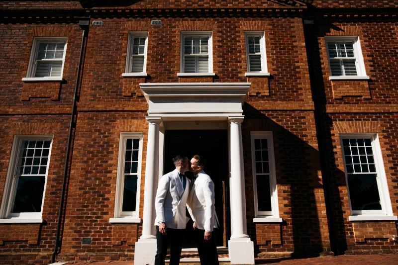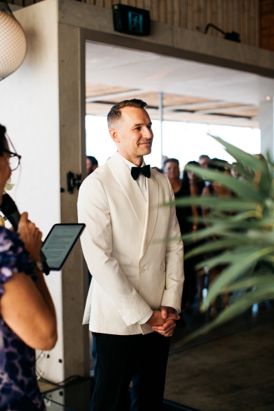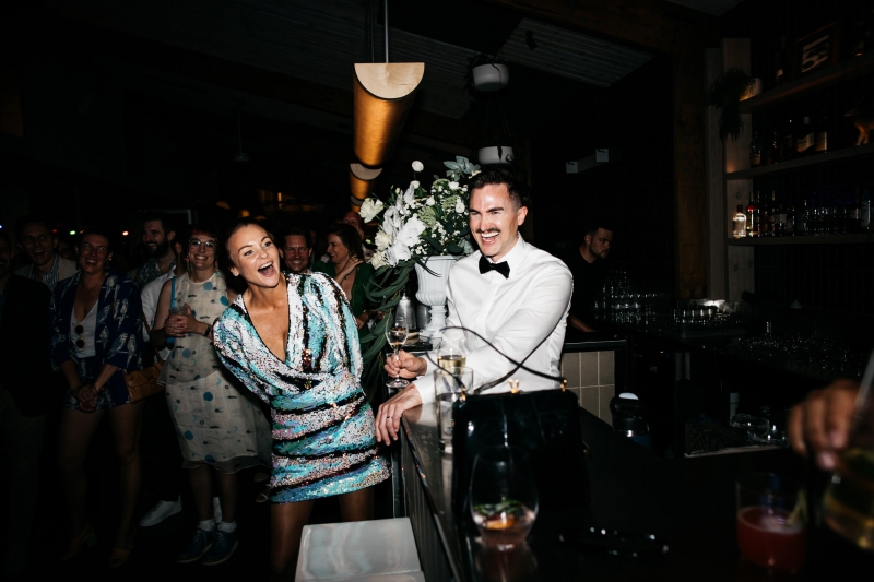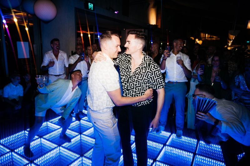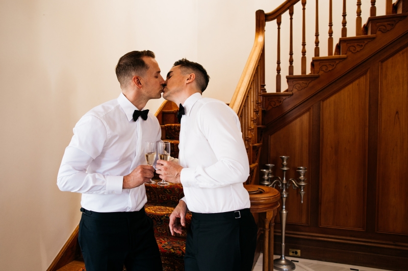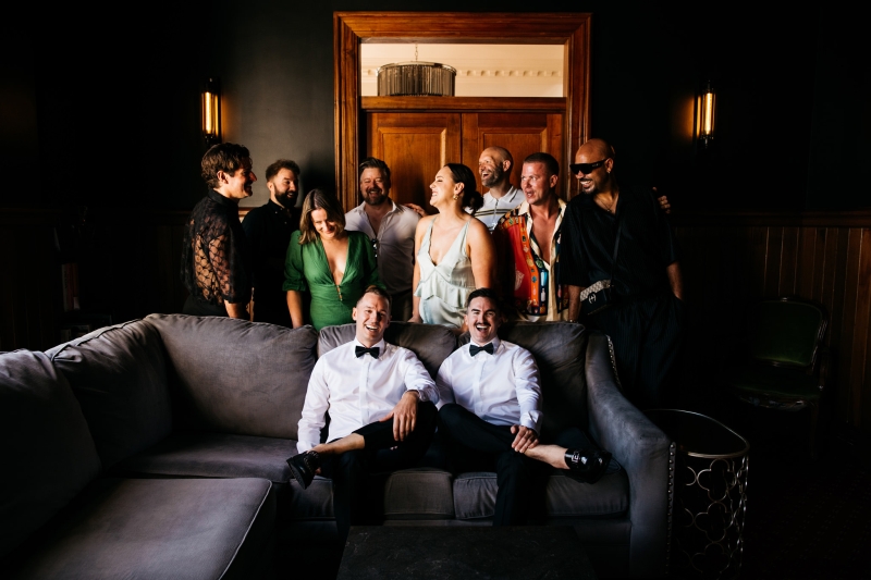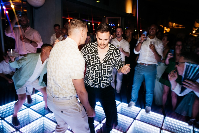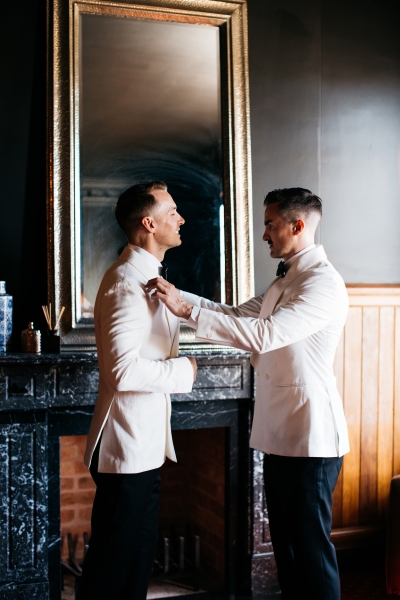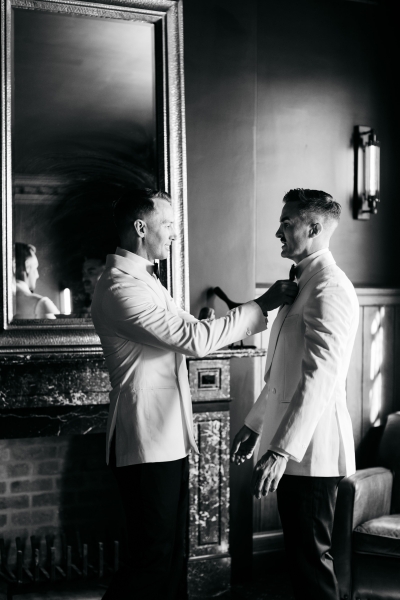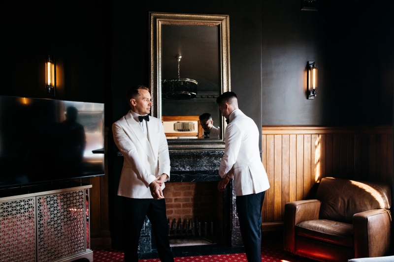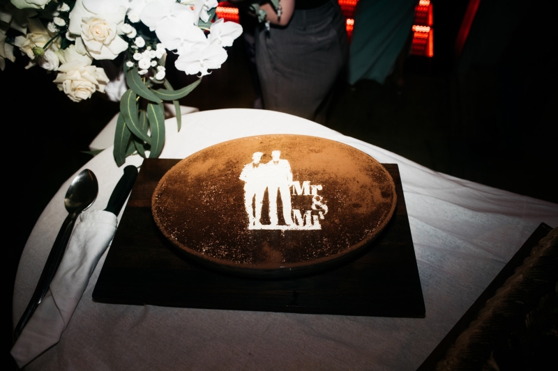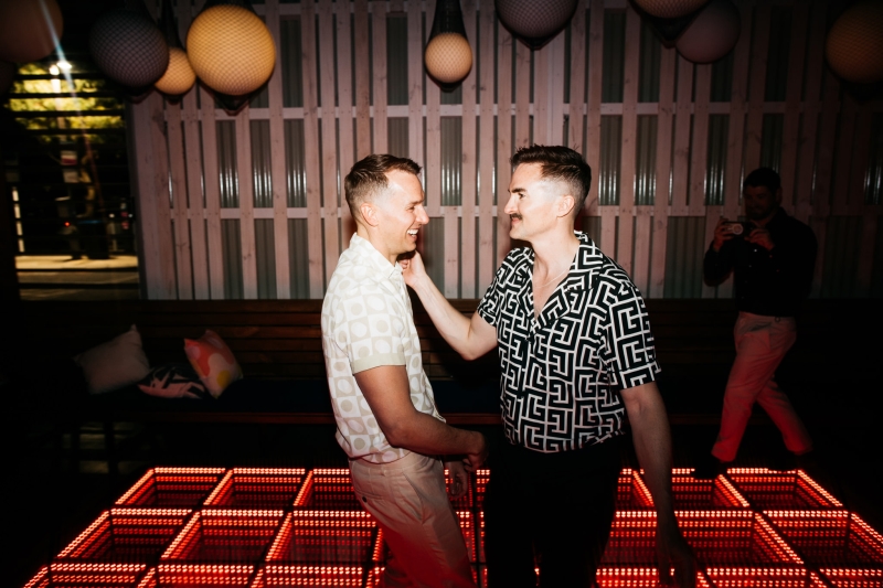 Deciding on a final outfit for the big day was no easy task for either Josh or Simon. The one thing they could agree on? The craftsmanship of an Oscar Hunt custom suit had them head over heels in love! “Classic black and white for the ceremony and then a quick change into something more suited to the dance-floor,” Simon explained.