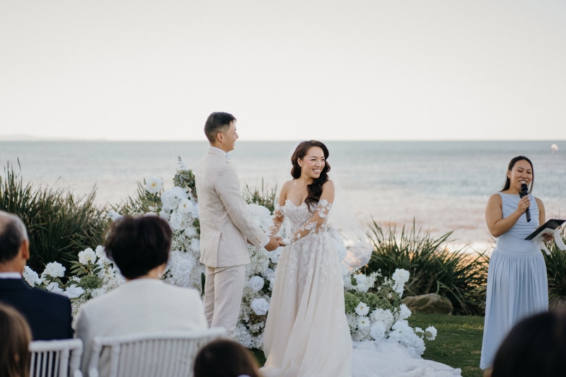 With breathtaking waterside views, Long Reef Gold Club was the perfect venue for Anita and Steve’s Western ceremony. “The beauty of it is very much weather dependent. In the days leading up to the wedding, Sydney was experiencing torrential rain and wind. But miraculously, the rain stopped, and clouds passed the evening before the wedding.”