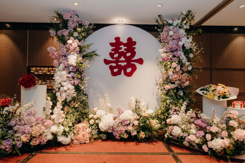 2. The red tea ceremony backdrop, with the illuminated double-happiness sign, created a striking focal point that perfectly captured the day’s significance.