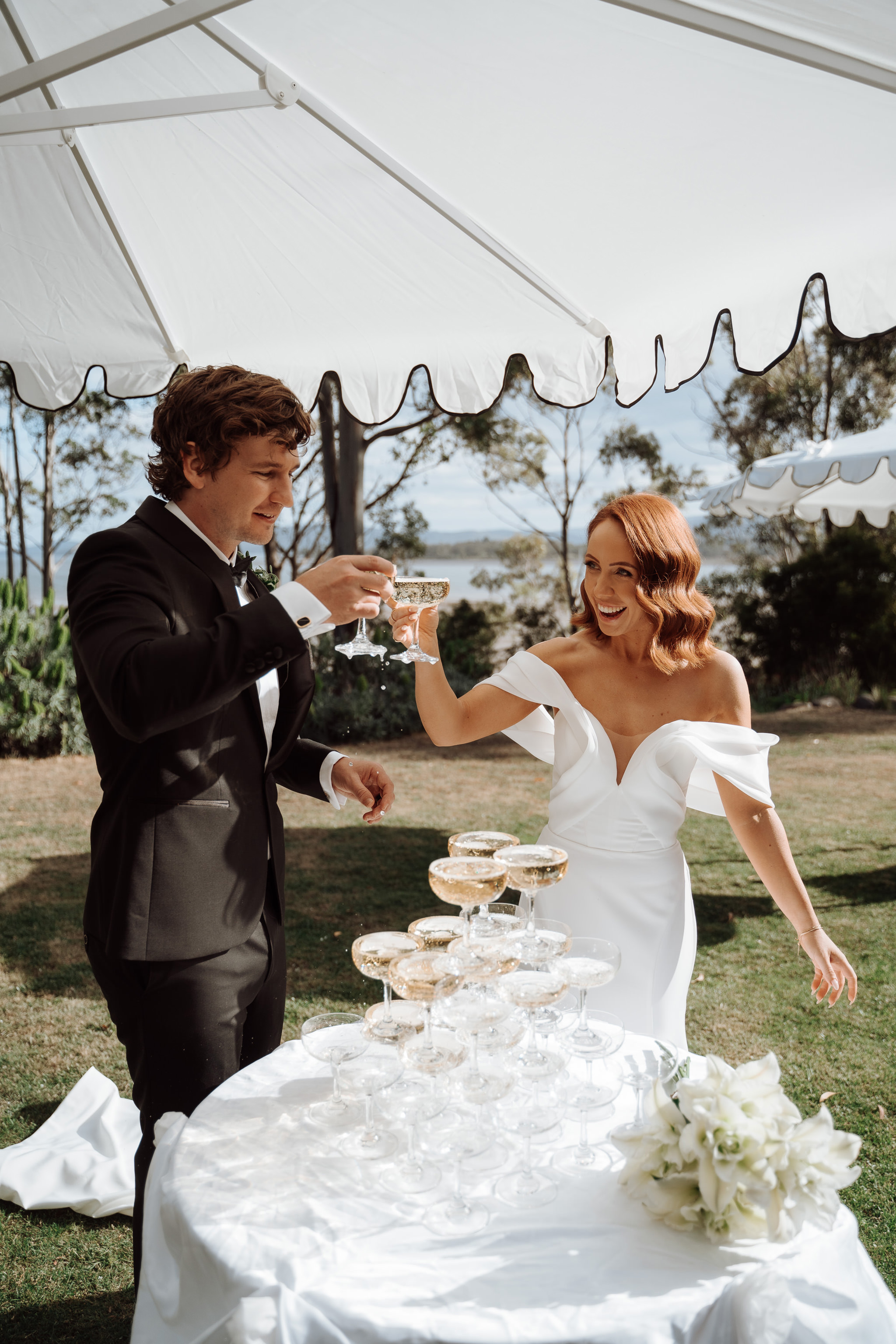 Photographer: @ninahamiltonphotography / Engagement Ring: @melissa_harris_jewellery / Wedding Ring: @melissa_harris_jewellery / Groom's Attire: @mawsonossa / Catering: @seasonandfire / Styling: @freyr.studio / Flowers: @Murphybloom / Venue: @Mayfieldestatetas / Band: @oberonlane / Celebrant: @rachael_calvert_weddings⁠