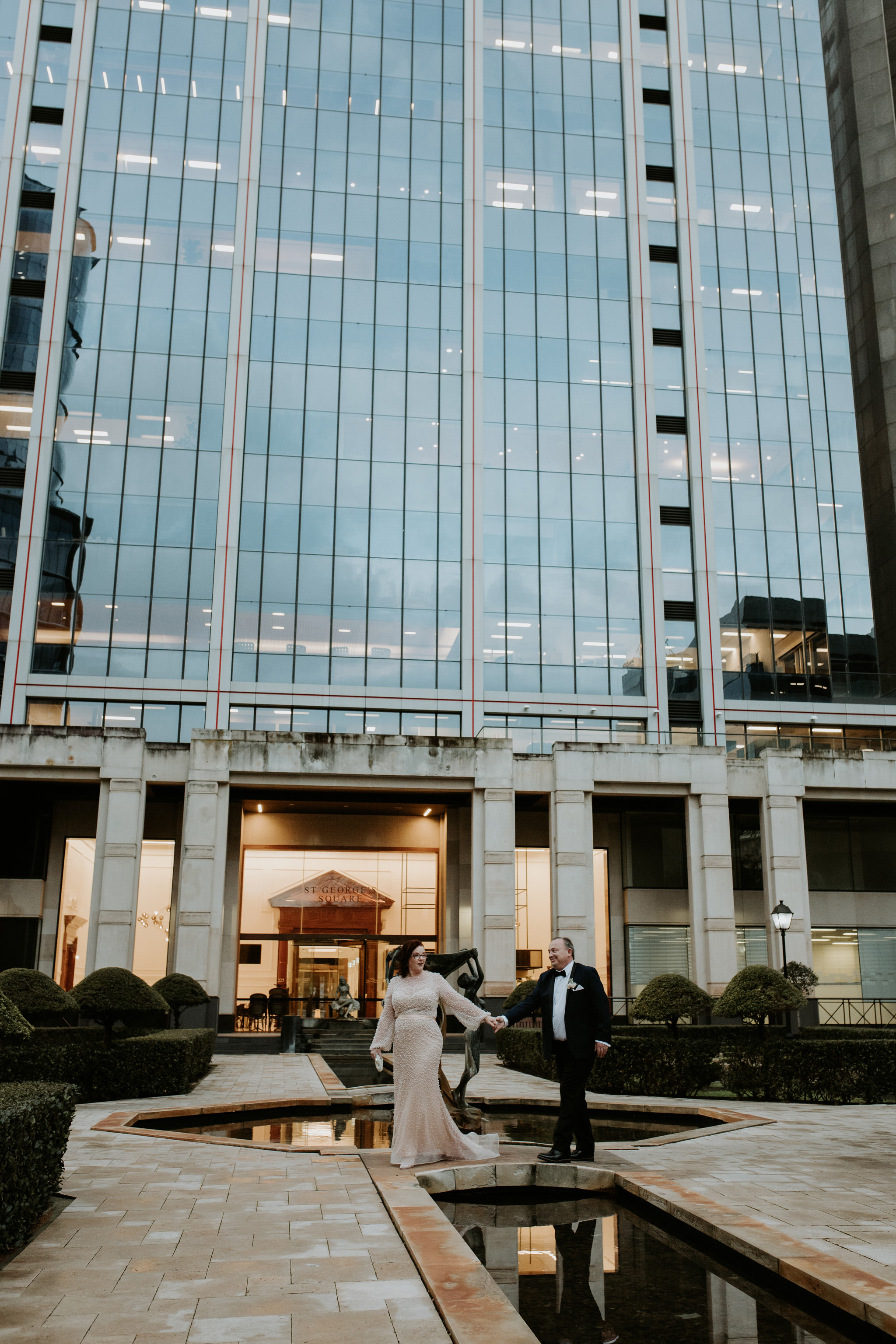 We'll never get tired of seeing couples do things their own way, and Alex and Chris leaned all the way in. Their winter micro wedding in The Rocks was softened by grey skies and brought to life with the richest pops of red, from roses to heels to the Rocks themselves!⁠
