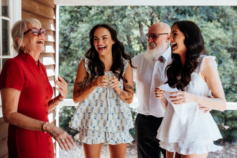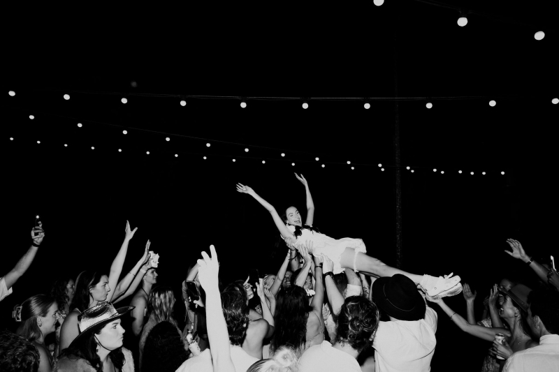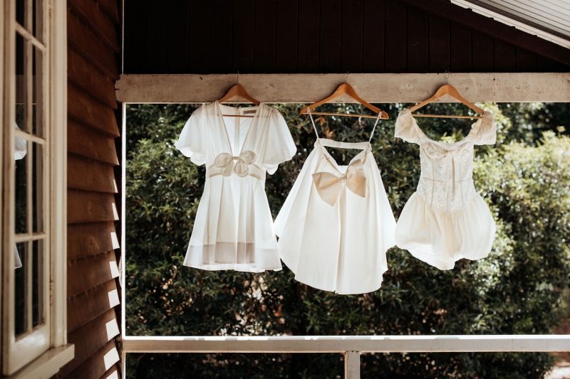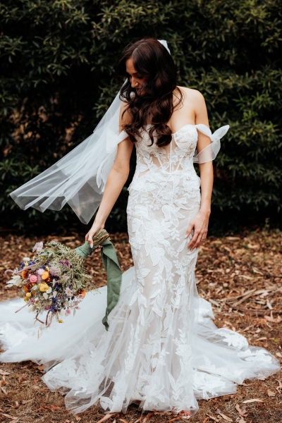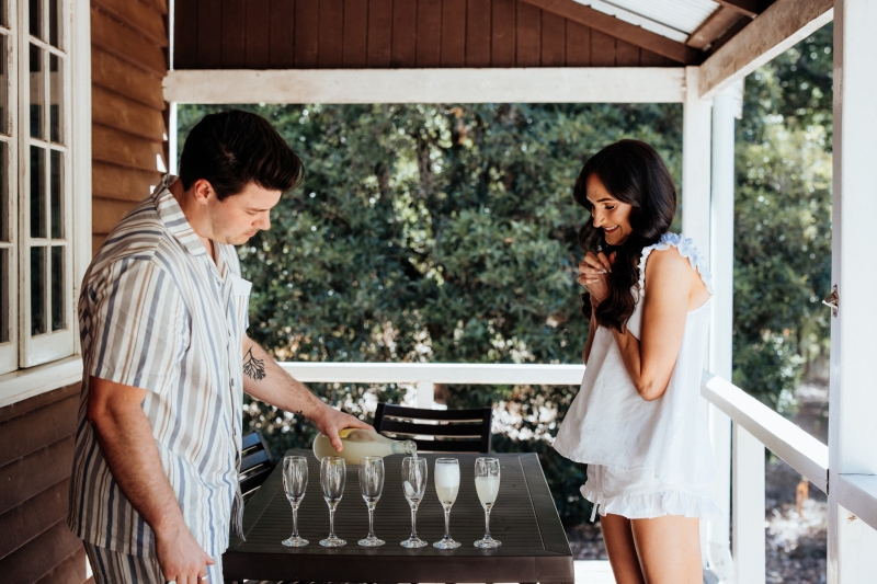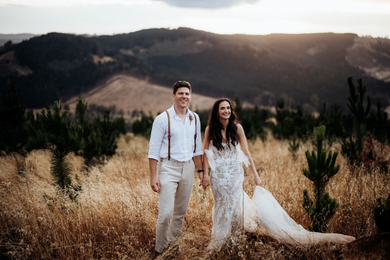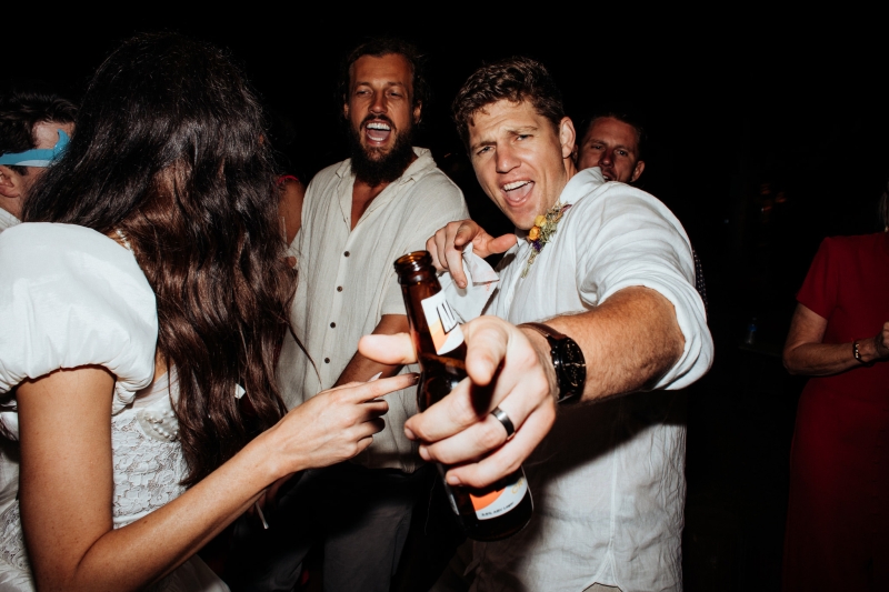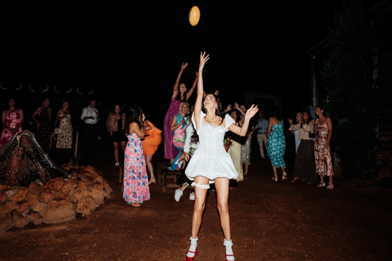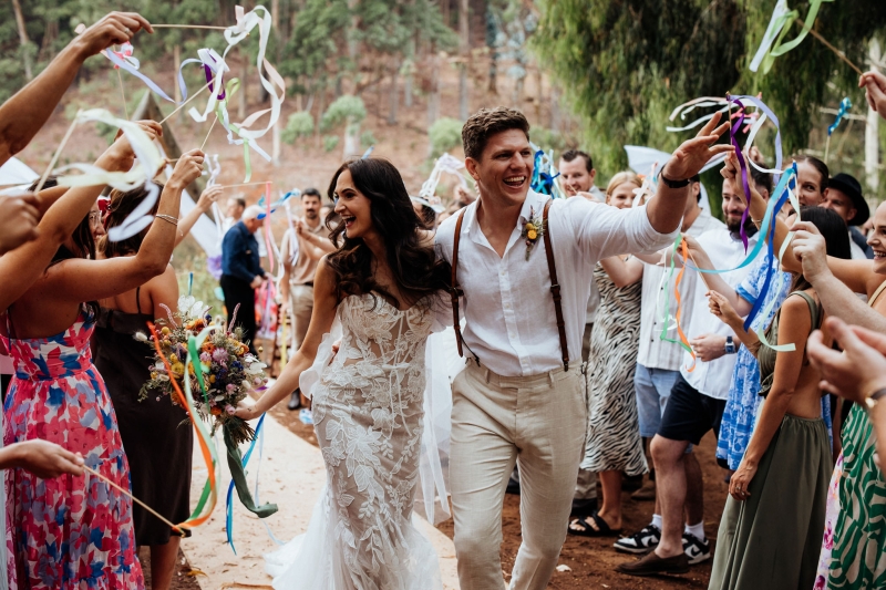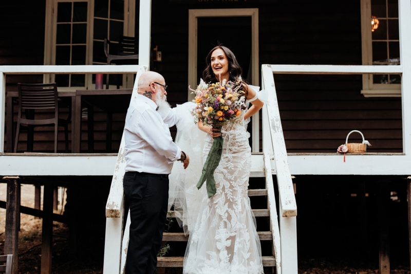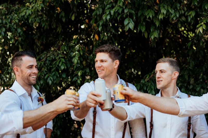 When they were searching for the perfect venue for this festival-inspired wedding, the main non-negotiable they wanted was no curfew – meaning maximum boogying hours. “We found a blog which included five curfew-free venues, we ended up visiting three of them, and Lewana Cottages felt like us from the start. We both grew up outside of Perth, so we wanted a venue that felt like the country, where we could be outside among the trees and kick up the dirt. Lewana gave us the freedom to make the weekend what we wanted it to be. Having the three days at the venue meant we had enough time to nestle in with our guests, and Errol and Nola were so accommodating and helpful the whole way through. We were even able to stay at the venue over the June long weekend with our bridal party to show them the venue, and we took our parents there for a weekend too, so we really got to know the venue and owners, which added to the overall experience!”