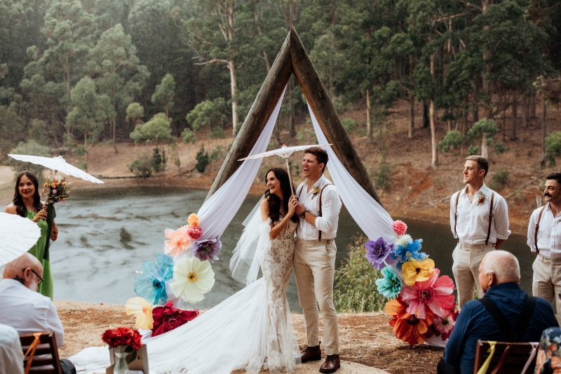 If there were only one word we could use to describe today’s featured wedding, it would be zesty! Fun, playful, and definitely inspired by a bush festival, Laura and Josh’s wedding was not only a celebration of their love but also of the love they hold for all their guests. Each of their 110 guests received a personal letter that the couple had taken the time to put together, and it wasn’t the rain that made guests misty-eyed! Captured with all the fun and playfulness this day deserved, thanks to Victoria Baker behind the lens.