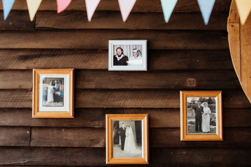 After the ceremony, Laura and Josh reconvened with their families under the big tree. “We wanted to have a special moment with our loved ones away from the group, and take our family photos from there. We also put up the wedding photos of our parents, grandparents and great-grandparents in the shed where the reception was held.”