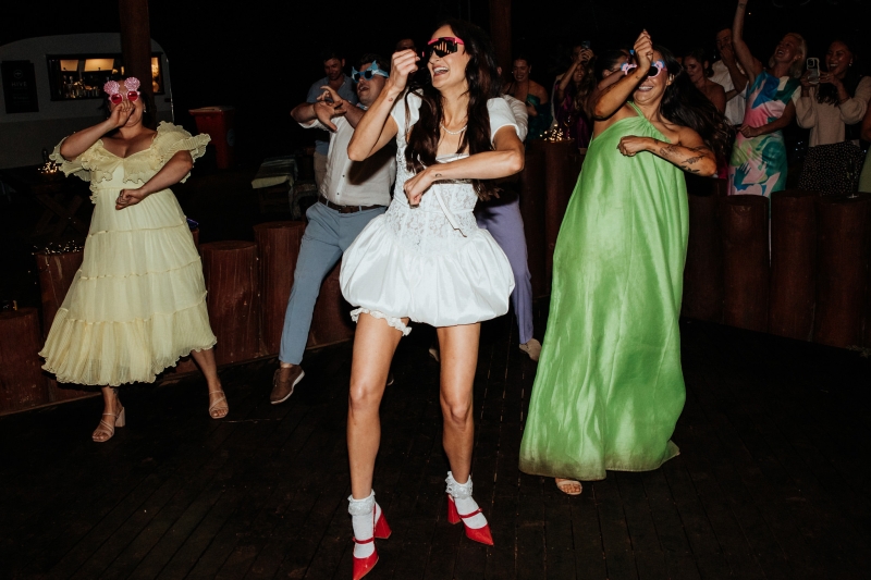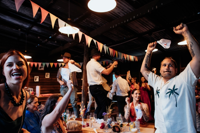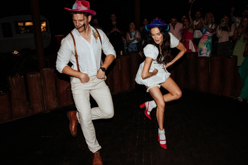 It wasn’t long after that the costume box came out, and guests dressed themselves to the nines in wigs, sunglasses and hats! “We all moved into the red dirt under the shed, kicking up the dust as we all sang “Tribute” by Tenacious D. It was quite a sight with people dancing on the benches and Josh and I at the front of it all singing into the crowd together.”