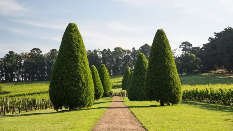 In Clarendon, Maison de Moon wraps around a French-inspired homestead, with vine-covered walls, stone doorways and a beautifully landscaped garden. It feels quiet, romantic and understated, perfect if you want Europe without the fuss.