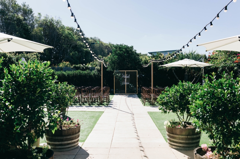 In the Byron hinterland, Deux Belettes is pure European elegance, with vine-covered walls, courtyards, colonnades and sweeping views across a macadamia orchard and Emerald Lake. The whole place is designed to feel grand without feeling stiff. See Deux Belettes’ real weddings and features here.