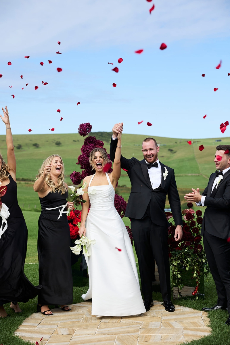 - Lawn games or a statement moment (like a confetti toss or champagne spray!)
