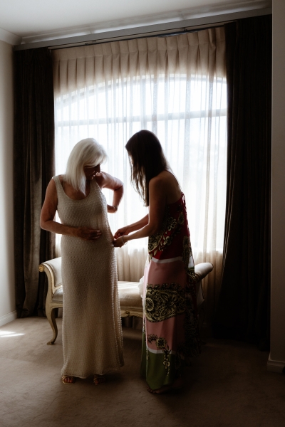 With the help of her daughter-in-law Erin, Anne went shopping for a new dress for their at-home ceremony. “She took me shopping, and we found the right one at Manning Cartel at Claremont Quarter. Thank you, Erin. I would not have gone on my own.”