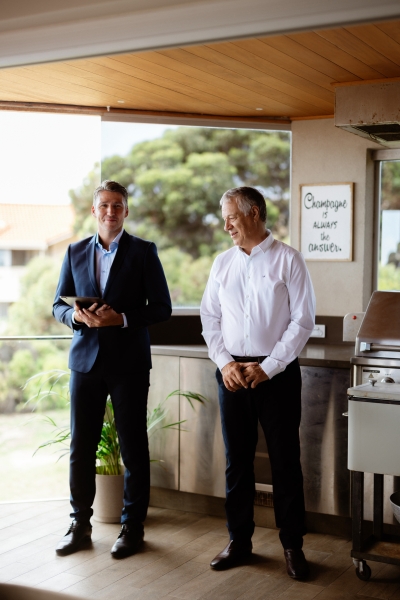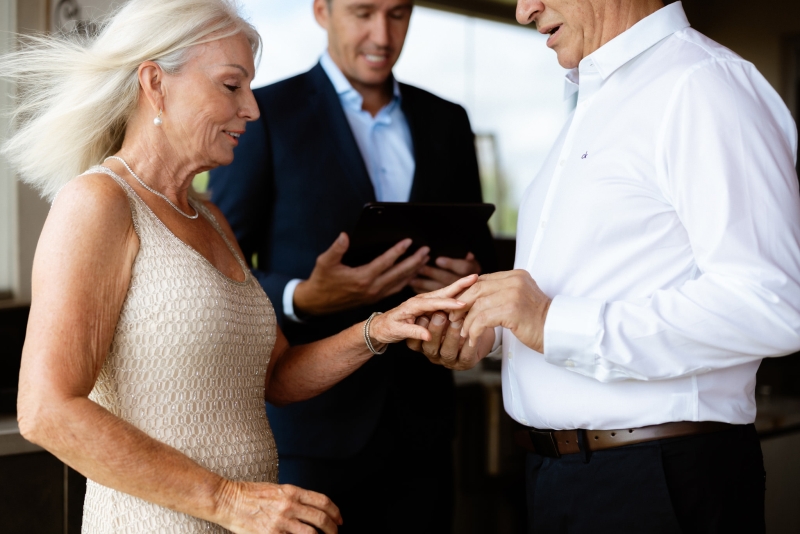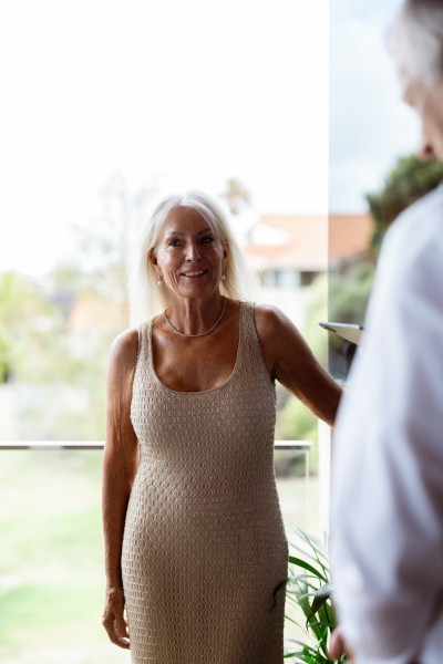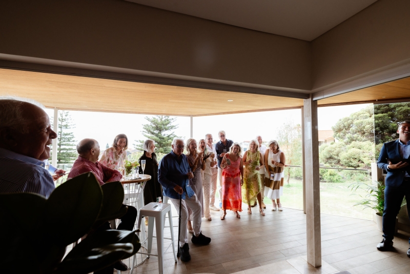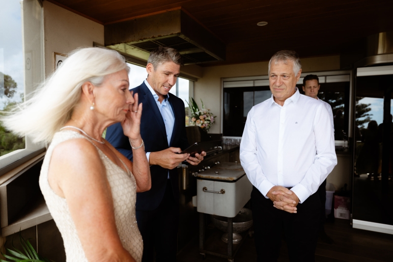 Their back deck in their home in Perth was the perfect setting for this summer home ceremony. “With the ocean in the background. Again, thank you, Erin, who organised a beautiful flower arrangement by Poppy’s in Nedlands!”