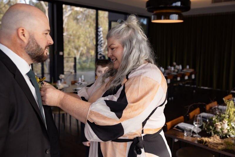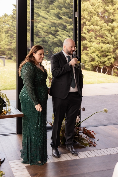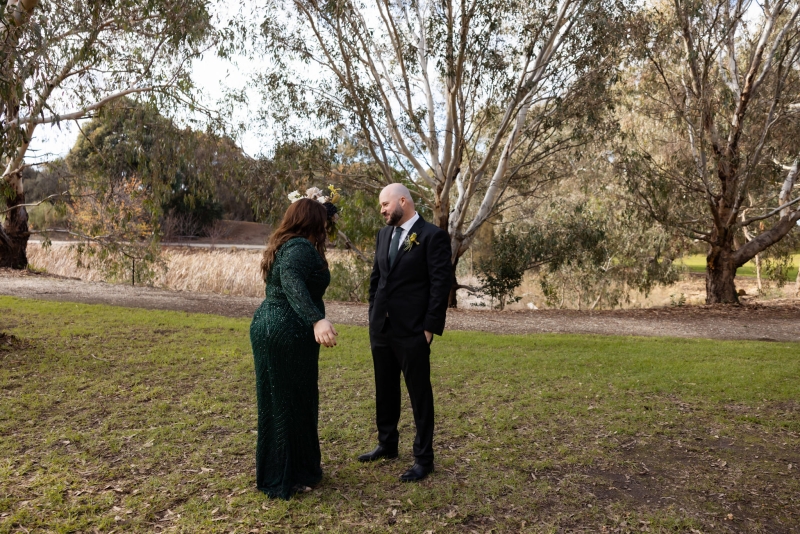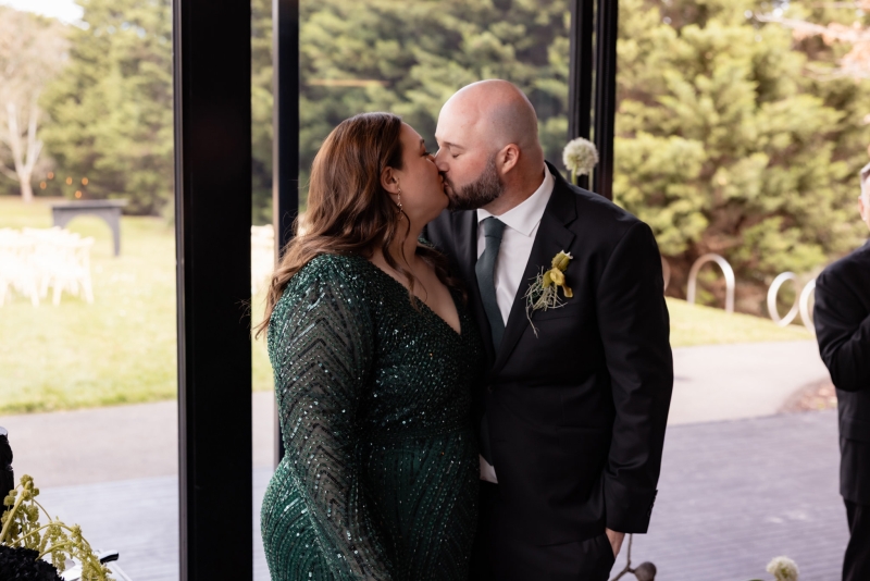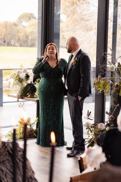 The whole day takes place at Barwon Edge in Geelong, nothing too pretentious but still elevated, perfect for their moody winter wedding. “We loved it. Barwon Edge has a gorgeous tree-lined driveway, and the glass details in the building bring the outside in. The gardens surrounding the venue are a lovely space to hold a ceremony and to take photos. The food was absolutely incredible! Our guests raved about their meals and many have revisited since our wedding. The service was impeccable,” Grace gushes.
