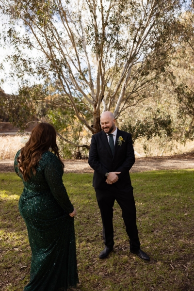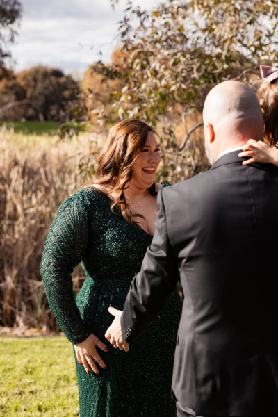 They started off their day with a private first look. “We had a moment to ourselves, and we were both so genuinely happy and so full of joy when we saw each other. No tears at all, just all smiles! We were then joined by our daughter and my step-son, and it was such a great moment just being together as a family and feeling official. Our family photos were a whole heap of fun as well.”