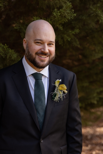 Adam wore a classic black suit with an emerald green tie to match Grace’s dress. “Adam is a humble man who doesn’t like the spotlight. Something classic was right for him and worked perfectly for the relaxed feel of the wedding,” Grace shares.