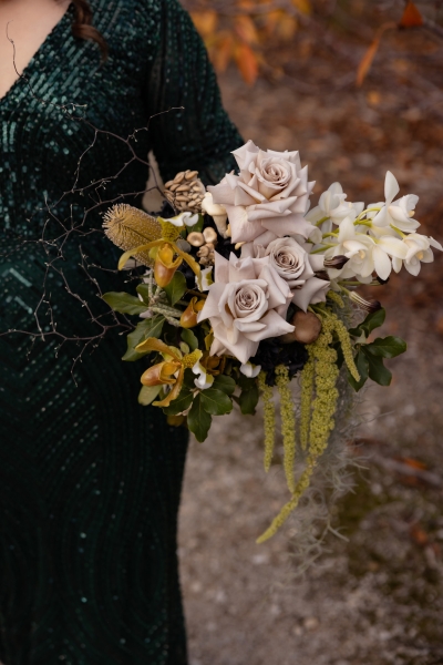 There are a few details that stood out as extra special for Grace, aside from marrying her now husband, but the flowers and styling top everything else. “All the visions floating around in my brain for years came to life, and it was just as incredible in real life as it was in my mind. My Bridal Bouquet was just something else with the mushrooms, black hydrangea, slipper orchids and menta roses.