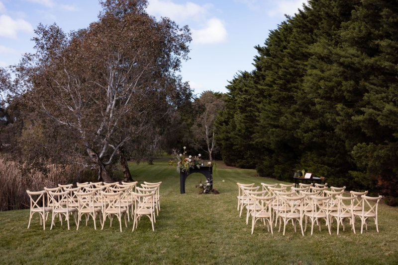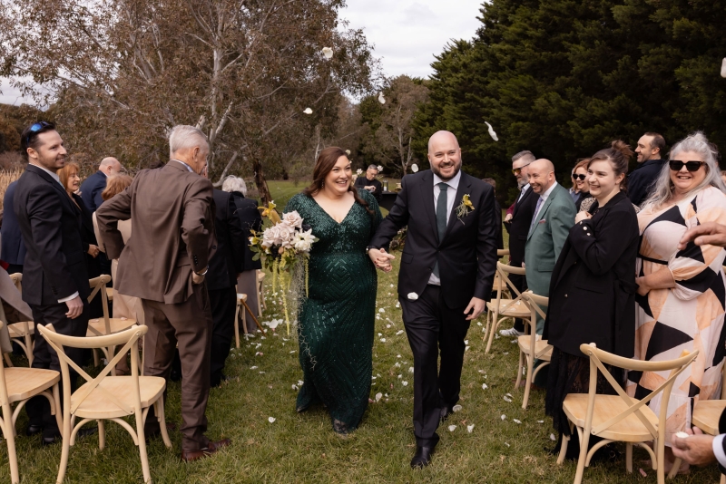 Grace and Adam’s love story feels a little bit like the universe kept missing their cue – until it didn’t. After years of unknowingly orbiting the same Victorian towns, festivals and beaches, it took one Tinder swipe and a very patient 40-minute wait at Fisherman’s Beach to finally bring them together. So when Grace (an events and wedding florist for over a decade) planned their own day, the brief was simple: no stress, no fuss, just an elevated-casual celebration filled with texture, mood and the people who matter most.