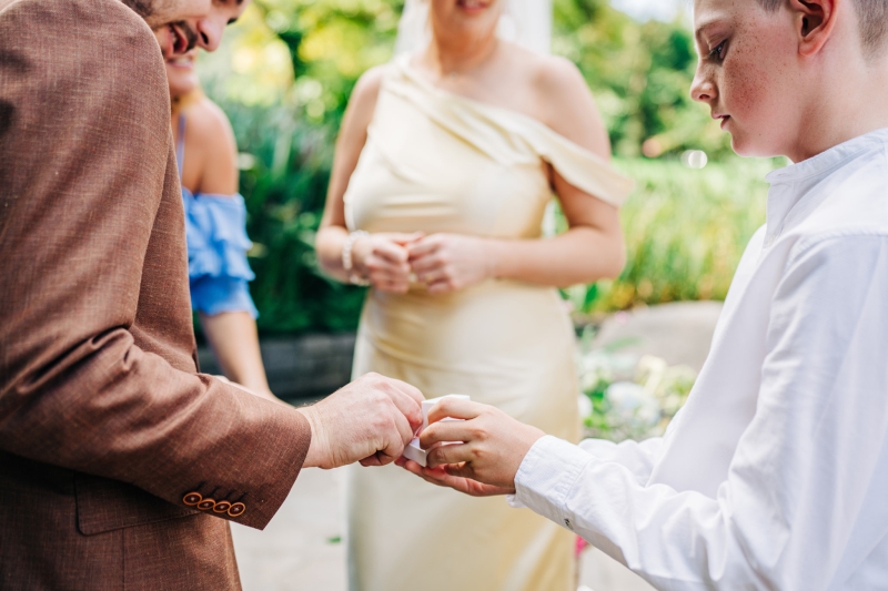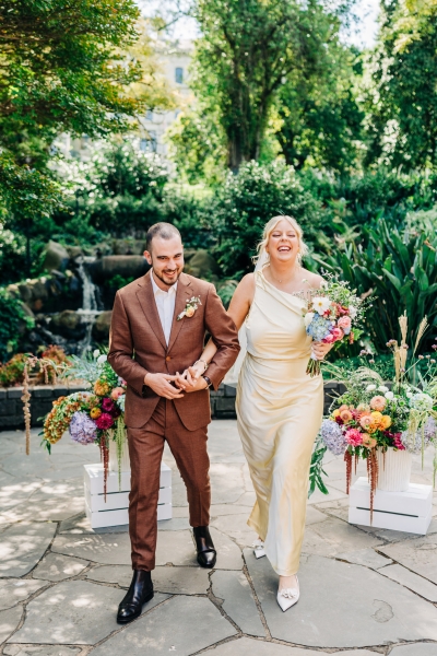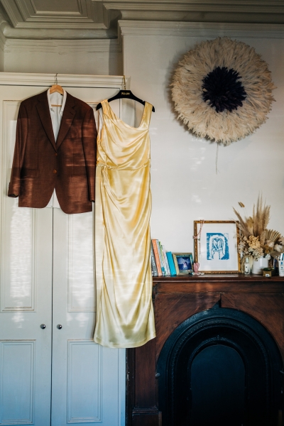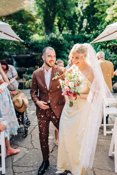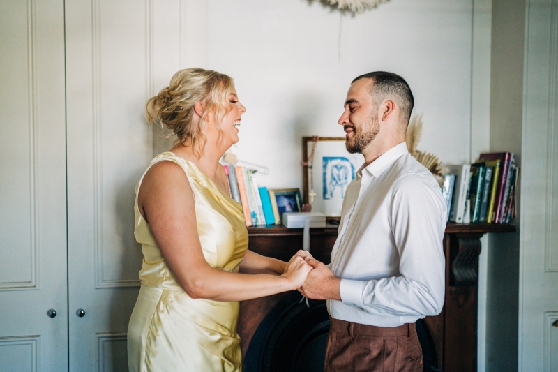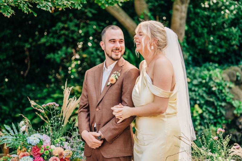They decided that the morning of their garden party wedding would be spent getting ready together at their home. “We wanted to spend as much of the day together as we could, and to enjoy every moment. We had our best friends come over to get ready with us, so we were able to take it really slow and just soak it all up. Then we travelled to the ceremony in the same car and had a small freak out together, which meant we weren’t as nervous by the time we actually got to the ceremony part.”