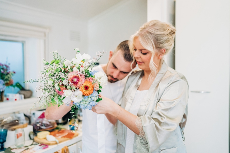 All of these incredible flowers were lovingly created by Daniel himself, sourced from his home garden, the garden he works at, and Gather Flower Farm in Silvan. “Daniel spent the whole day before the wedding creating the arrangements, my bouquet and his buttonhole flower. They couldn’t have been more beautiful. (And as a bonus, it was a great way to save thousands of dollars.)”