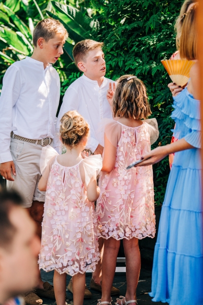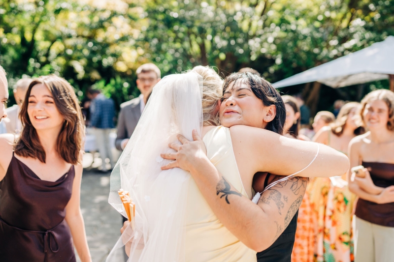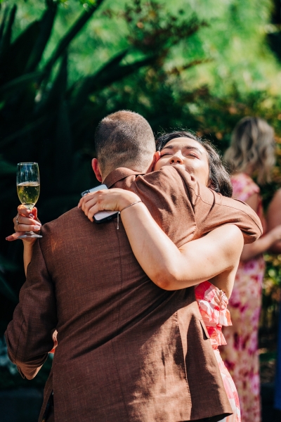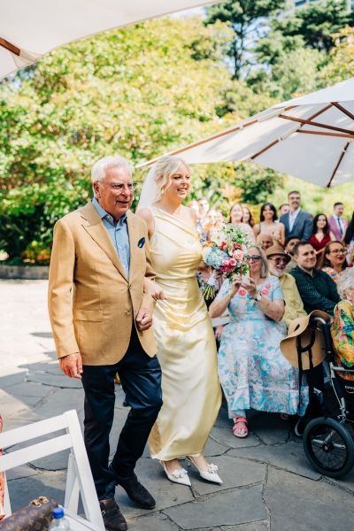If Sarah and Daniel had to describe their ceremony in one phrase it would be this: “a hilarious love-fest.” And they credit that all to their celebrant, Marry Me Sarah B! “She is one of my sister’s oldest friends, so I had known her for many years, and when she offered to marry us, I was so excited. Sarah is so funny, thoughtful, loving and knows exactly how to both warm up and wrangle a crowd. Her ceremonies are like nothing else – she spends a lot of time getting to know you as a couple before the day, so she absolutely nails it when she delivers her tailored ceremony. We couldn’t have wished for anything more honestly. We didn’t have a reading, but we wrote our own vows and Sarah told the story of how we met which felt just right to us. The ceremony was the one thing that people couldn’t stop talking about or coming back to after our wedding. I wish we could do it again!”