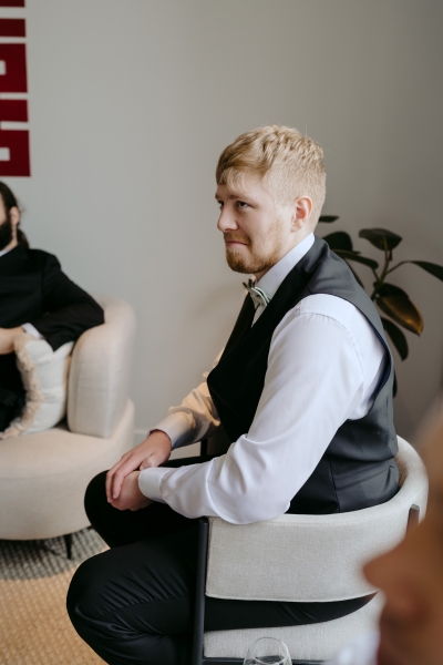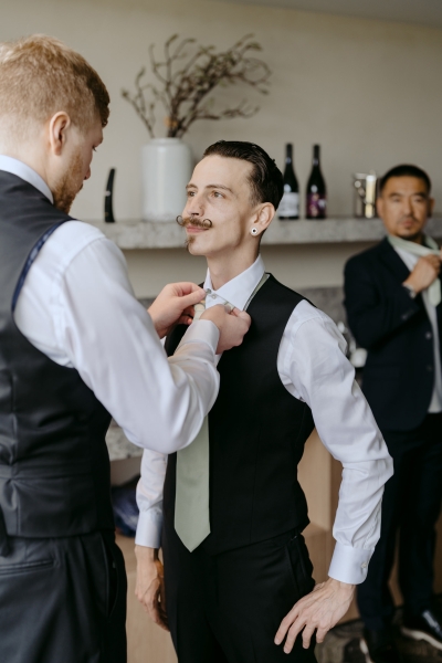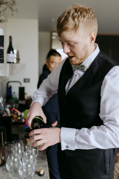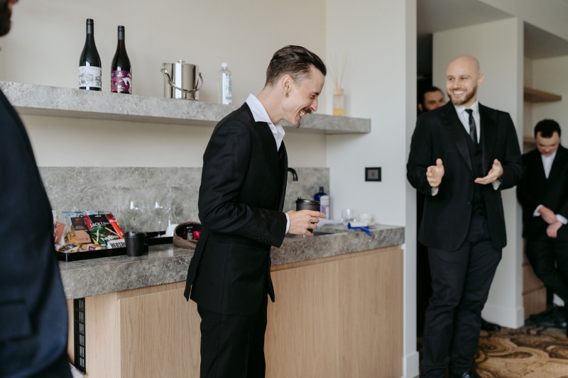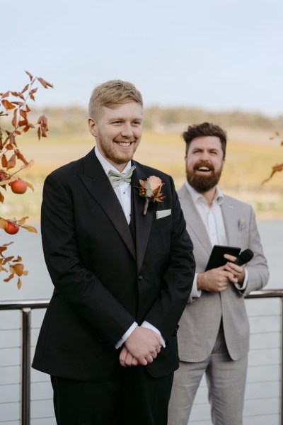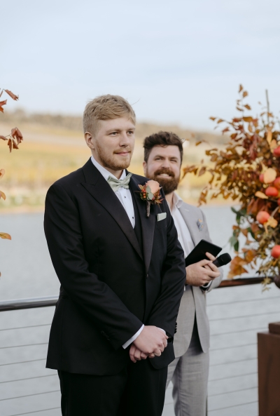 Ruairi worked with the incredible team at Institchu Melbourne, choosing a three-piece suit complete with a sage-green bow tie.