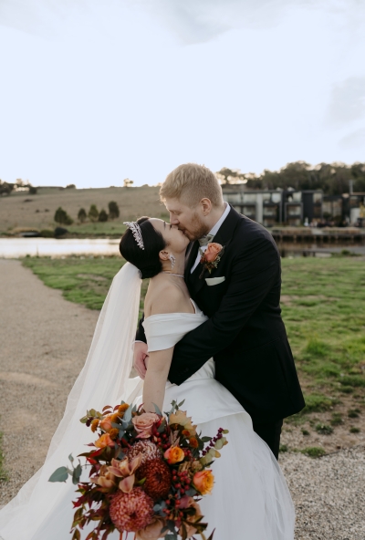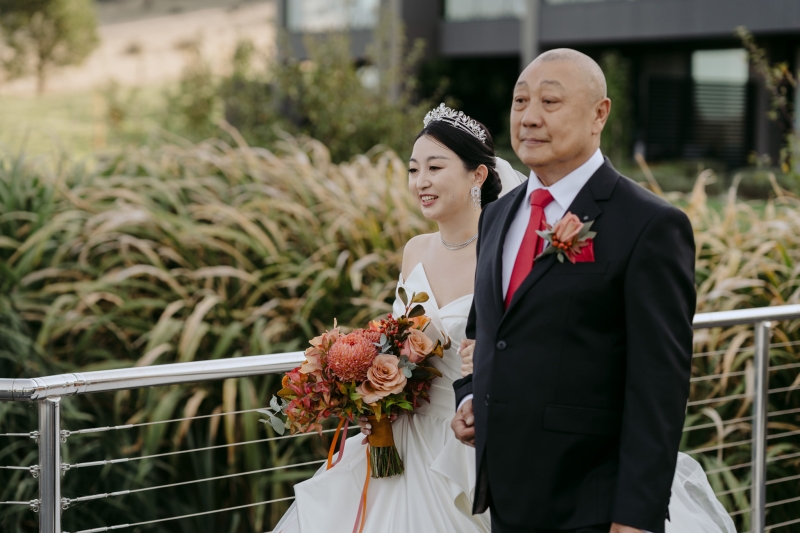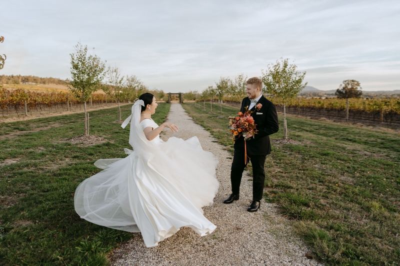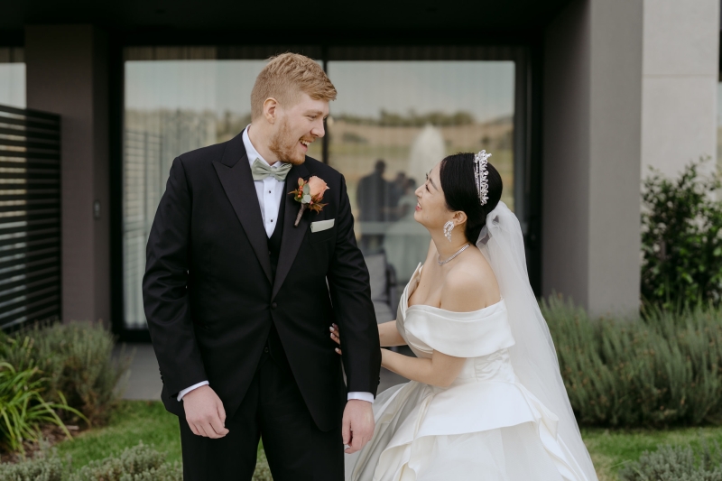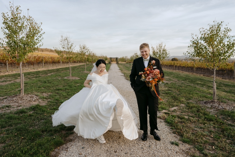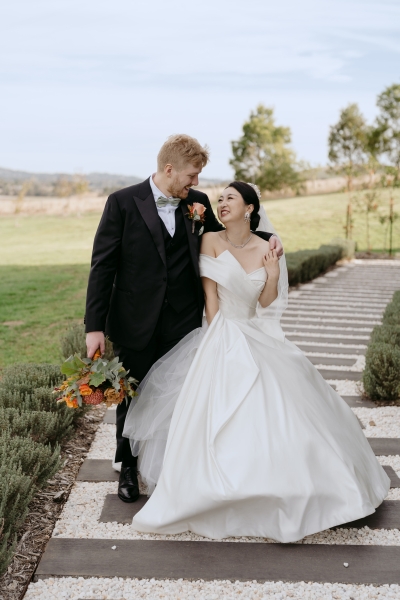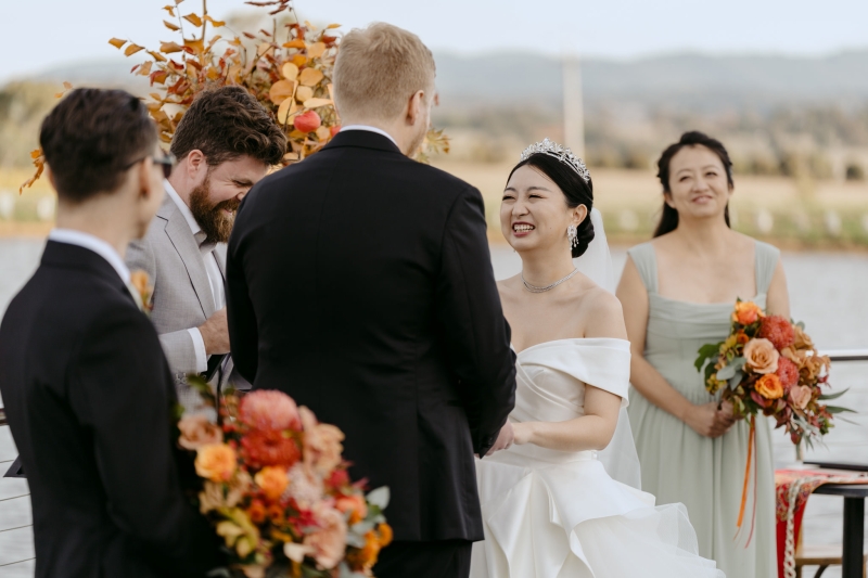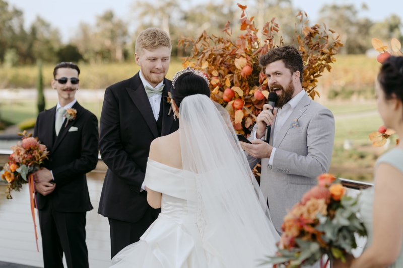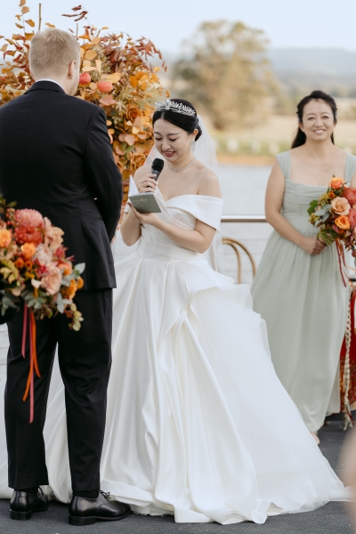 Lachlan Grisold from Weddings By The Beard officiated this wedding and helped Ruairi and May bring their ceremony to life. “We wrote our own vows to personalise it for us, but we didn’t want it to be too long so we kept it to a limit. We kept the vows as a surprise, and Ruairi, being nervous about public speaking, was super anxious during his speeches. It came with much laughter and surprise between us when we both landed on snacks in our vows.”