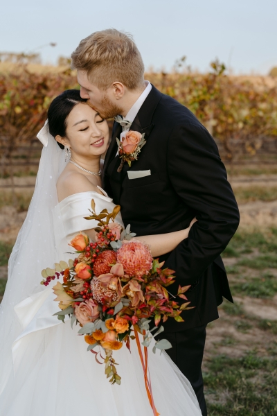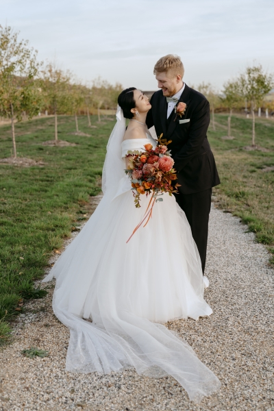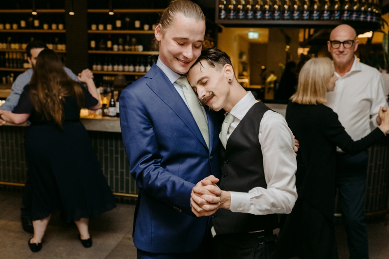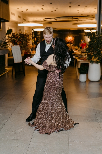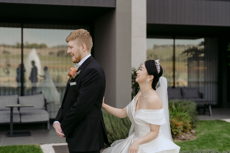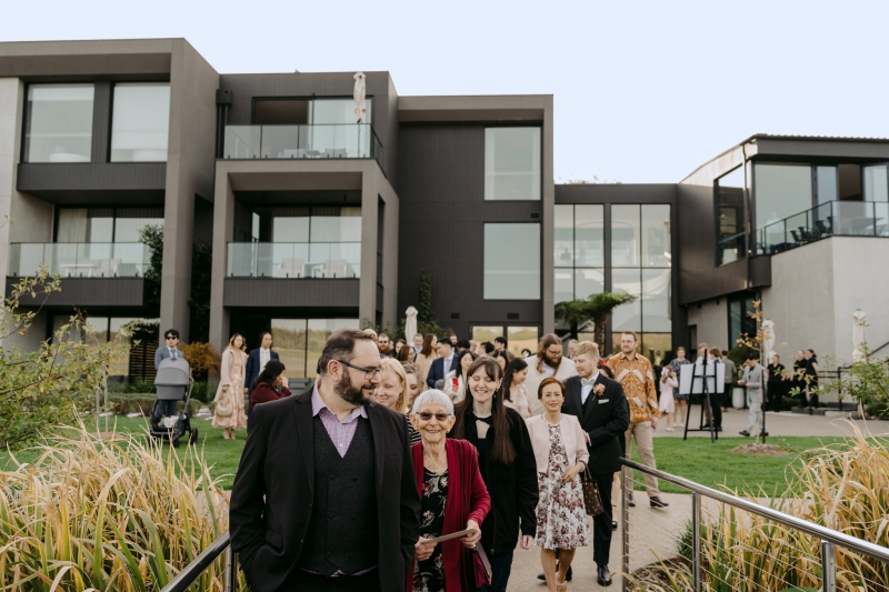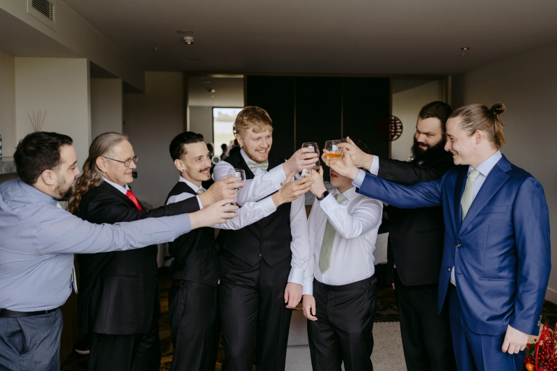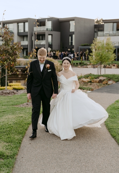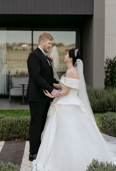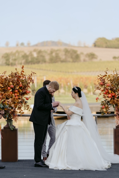 Lachlan Grisold from Weddings By The Beard officiated this wedding and helped Ruairi and May bring their ceremony to life. “We wrote our own vows to personalise it for us, but we didn’t want it to be too long so we kept it to a limit. We kept the vows as a surprise, and Ruairi, being nervous about public speaking, was super anxious during his speeches. It came with much laughter and surprise between us when we both landed on snacks in our vows.”