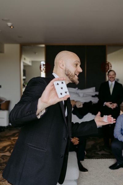 Their surprise MC was the talented Nick Kay Magic! “We even kept Briggsy in the dark, apparently it took them a little while for them each to figure out that they were both wedding suppliers. Both ourselves and our friends can be introverts and aren’t confident in front of a camera, but between them, we had lovely photos of entertained guests with huge smiles on their faces.”