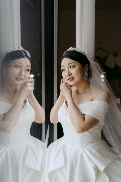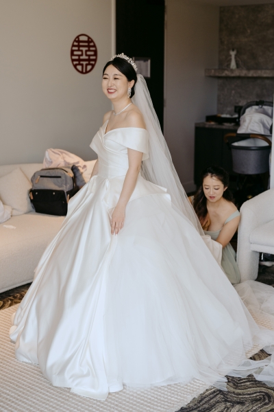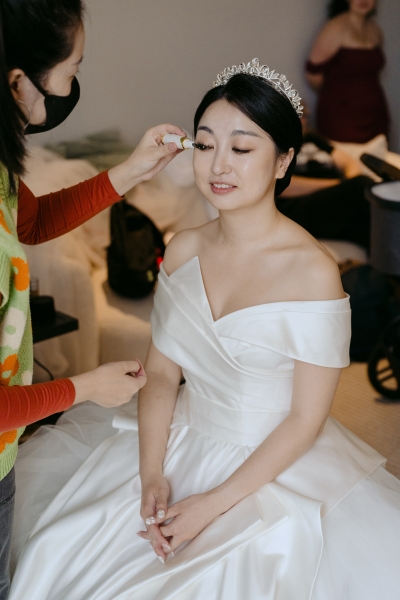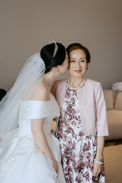 “Additionally, I wanted to shoutout to my makeup artist, Miao. She arrived with one extra helper on hand, and she set up both hair and makeup with all accessories for me, my matron of honour, and both mothers. I did not need to plan anything; she provided me with all matching necklaces, earrings, tiaras, wedding veils, for both outfits, including wig hair attachments for my mother (who actually has short, cropped hair that cannot be tied up in a bun). She was also pregnant but ran around the venue changing up my accessories and makeup touches between photos on the day (this was not requested, she went above and beyond)!”