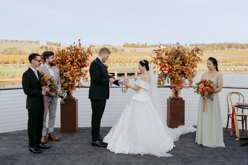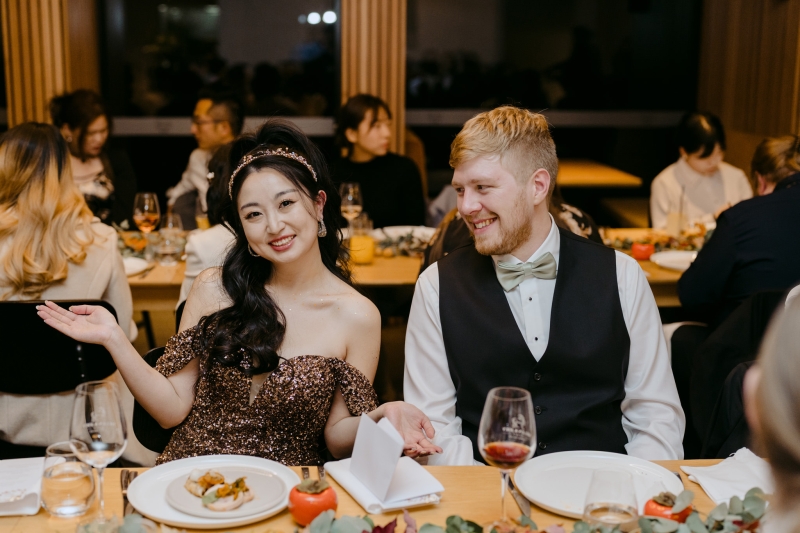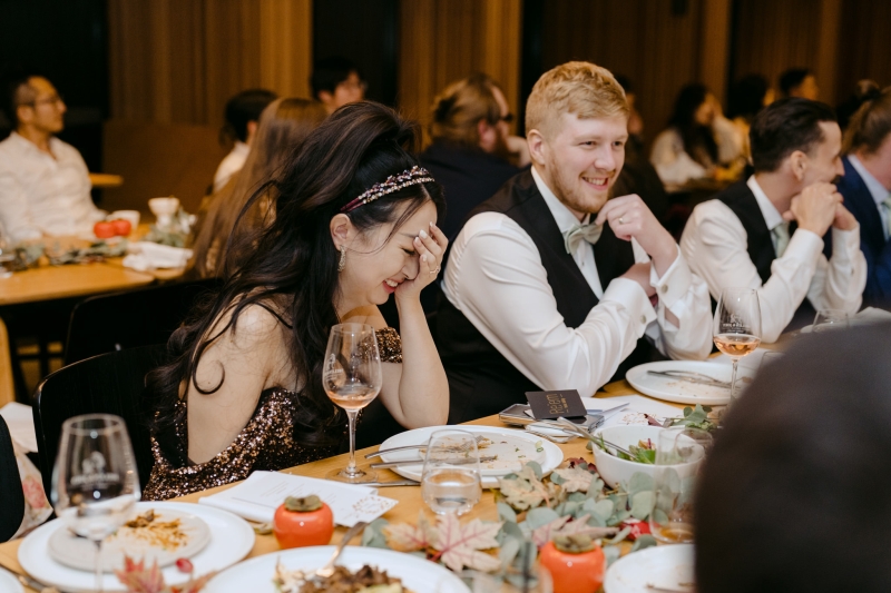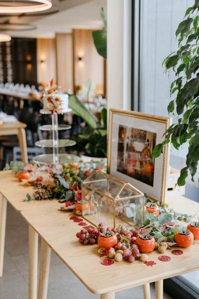 “We additionally requested our florist to add walnuts to the table. We had two varieties of walnuts sprinkled on the tables (for guests to forage and snack on the table decorations), two bags of local Yarra Valley walnuts with no frills, and a few packets of ‘easy hand-cracked walnuts’ from the Chinese snack section. The idea was to spark challenges amongst the guests when someone is able to easily crack a walnut, and another gets a challenge walnut.”