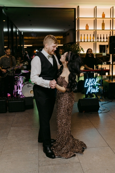 Their first dance was to “Lucky” by Jason Mraz & Colbie Caillat. A song that holds a special place in their relationship, marking their growth into marriage.
