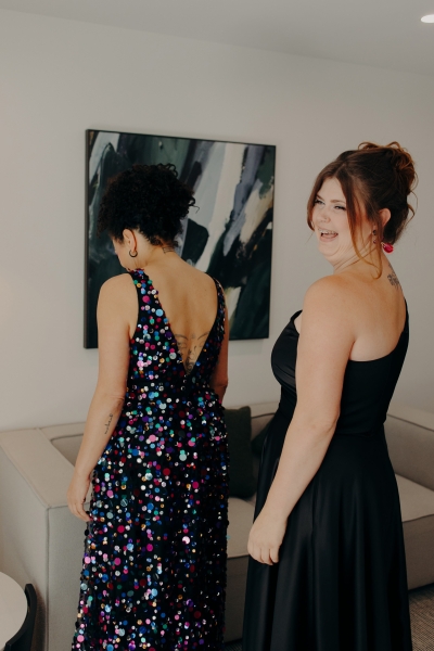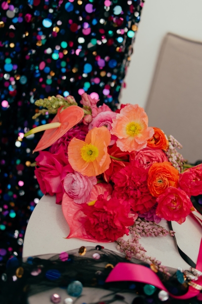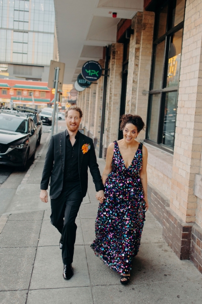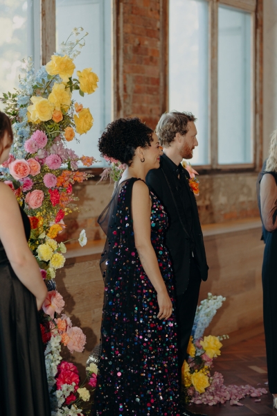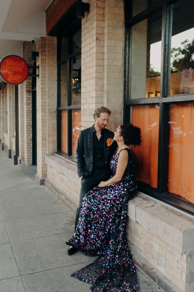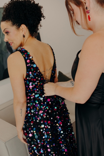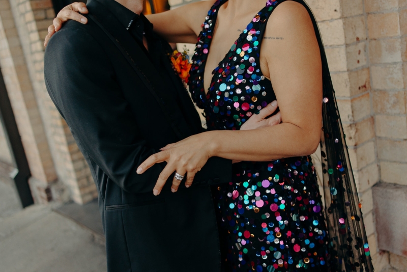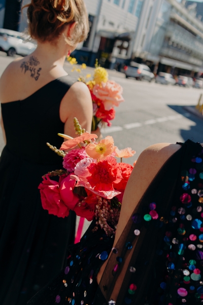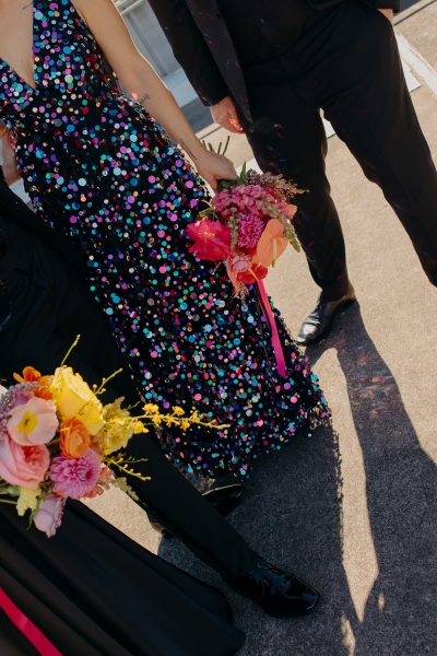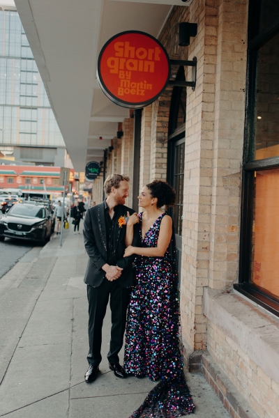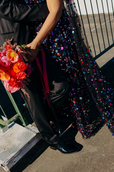 Jillian worked with the talented Susan Ogg to create the dress of her dreams: inspired by a Carolina Herrera dress from the pre-fall 2018 collection, full of confetti colours and sparkles. And when we opened the gallery and saw this dress… GASP!! “I am not a very traditional woman. I was not interested in wearing a white dress and everything it represented. Susan held my hand every step of the way and listened and adjusted when I changed my mind (again and again). In the end, she created the dress of my dreams!”