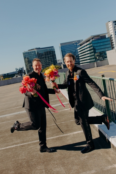 Their wedding took place at the tail end of Brisbane’s winter, with the perfect blue skies and mild temperatures. A fun fact about Jillian is that she actually has Zeus on her side! “Jillian often jokes that she has a special relationship with Zeus (yes, as in the Greek god), who helps her find car parks, upgrades and stops the clock when she’s late for work. Although she didn’t want rain on the wedding day, she put it out there to Zeus that maybe he could cough up a non-rain rainbow. He did one better and gave us an earthquake on the day, the biggest one in Brisbane in something like 100 years!”