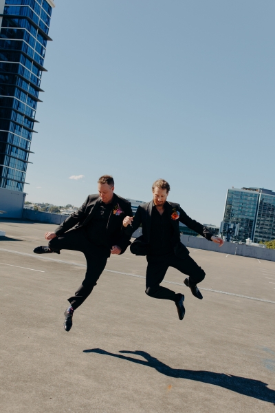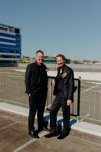 John’s brother, Graham, was the Best Man, wearing a matching tuxedo to the groom, sans sequins. Jillian had her sister, Trisha, as her Maid of Honour, wearing a beautiful black one-shoulder dress. “Trish lives in Canada and between the two of us, we tried to find dresses internationally. That failed, so the day she arrived in Australia, we went on a mad hunt of every Brisbane dress shop only to end up where we started at ‘A Formal Affair’.”