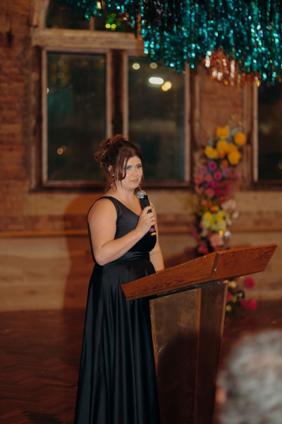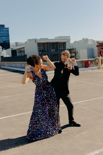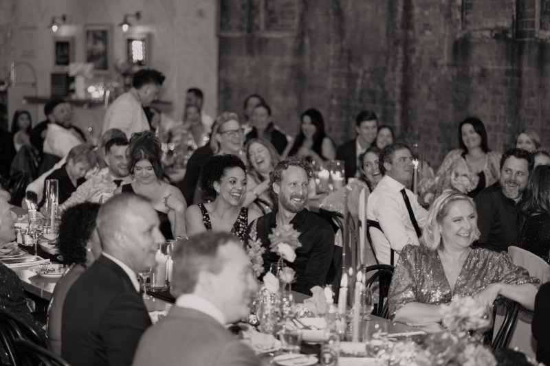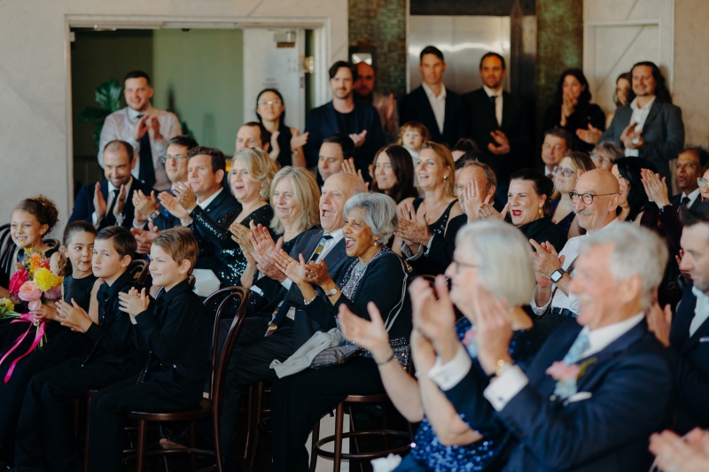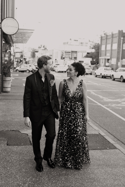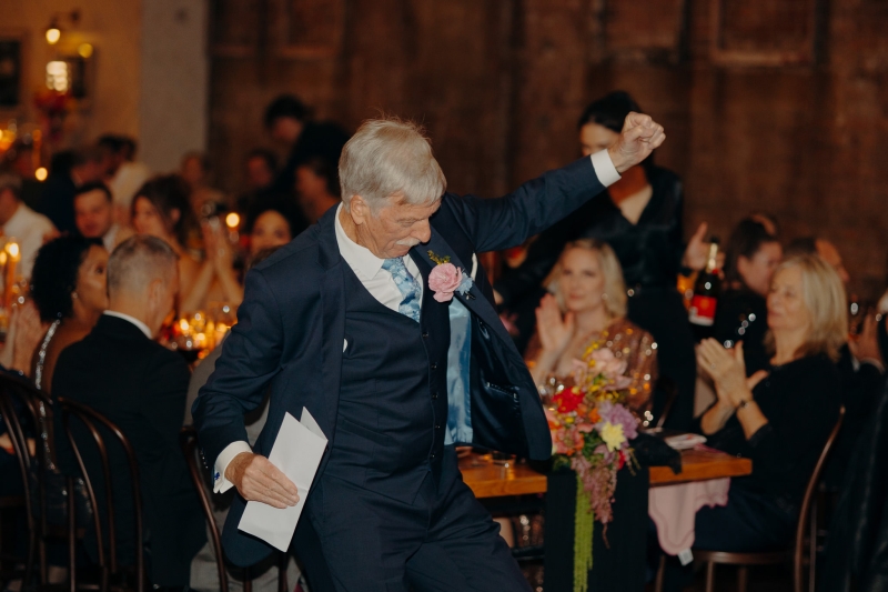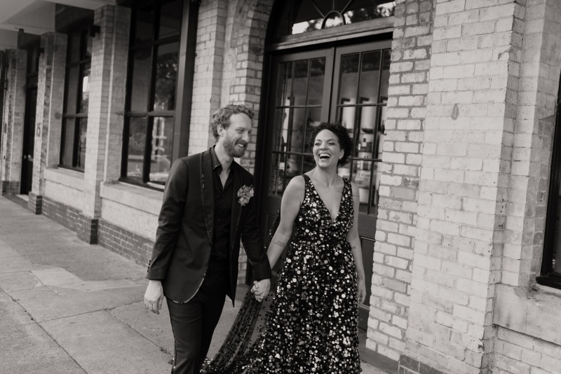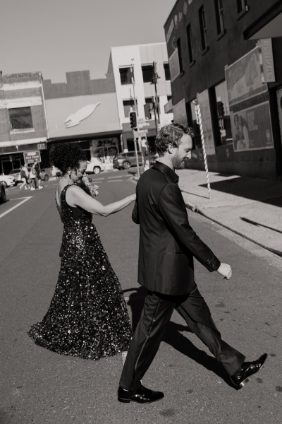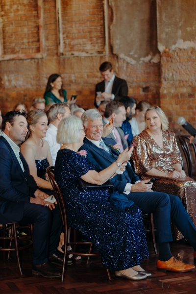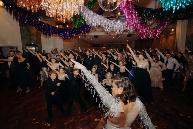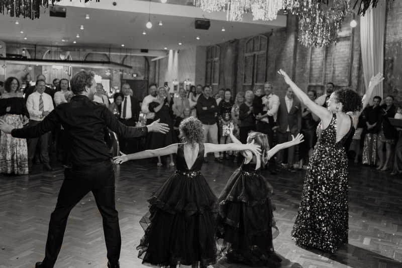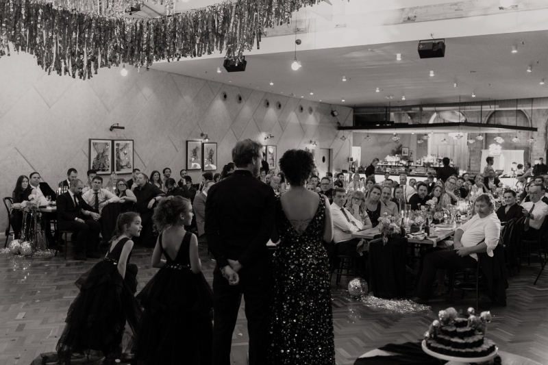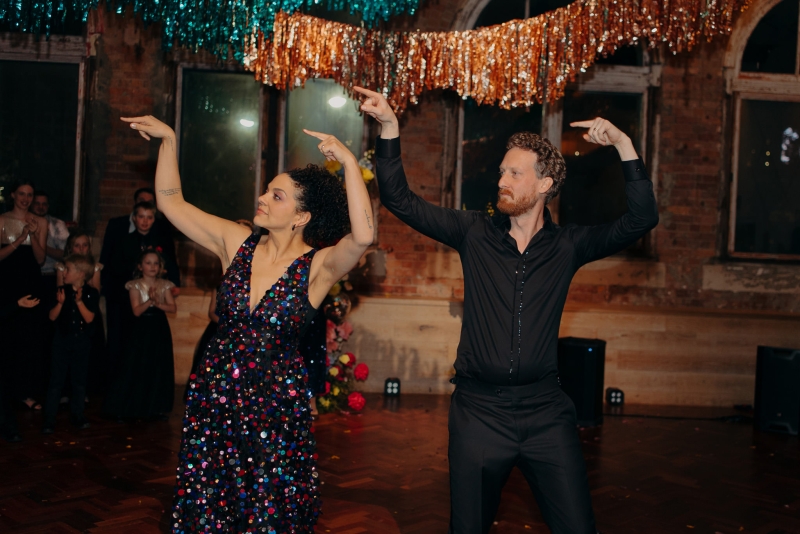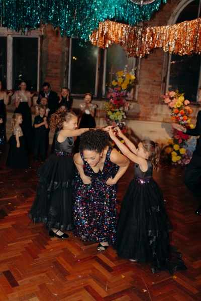 If there was one non-negotiable for their first dance, it was that their daughters experienced it alongside them. “They were beyond excited for this, and we hired the wonderful Anna from Mad Dance House to choreograph it. We started our dance (just us) to Randy Travis’ “Forever and Ever, Amen” as a nod to Jillian’s grandparents. Then we got our disco moves on to Sophie Ellis-Bextor’s “Murder on the Dancefloor”. Our daughters, who basically live the lives of (kids show) Bluey characters, joined us for a rendition of the Bluey intro theme. Then we all danced to Play School legend Justine Clarke’s “Everywhere’s a Dance Floor”. The look of pride & joy on our daughters’ faces will stick with us forever, especially thanks to the shot of the four of us at the end of our family dance.”