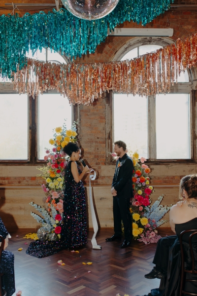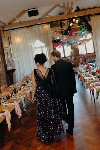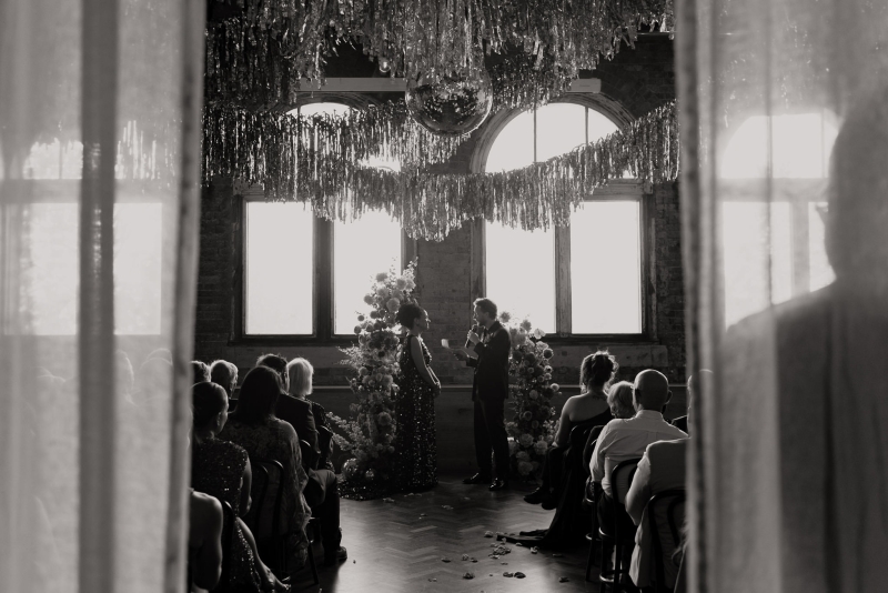 Today’s wedding isn’t about the beginning of a story: it’s all about celebrating ten years of one already well underway. After buying a house, starting a family, and even swapping an engagement ring for a bathroom renovation, tying the knot felt like the perfect excuse to throw a proper party for John and Jillian. The brief? Late-70s glamour disco with a Soul Train twist, plenty of sequins and guests dressed to impress. Luckily, Lovers and Legends was there to capture every sparkling, dance-floor-filled moment!