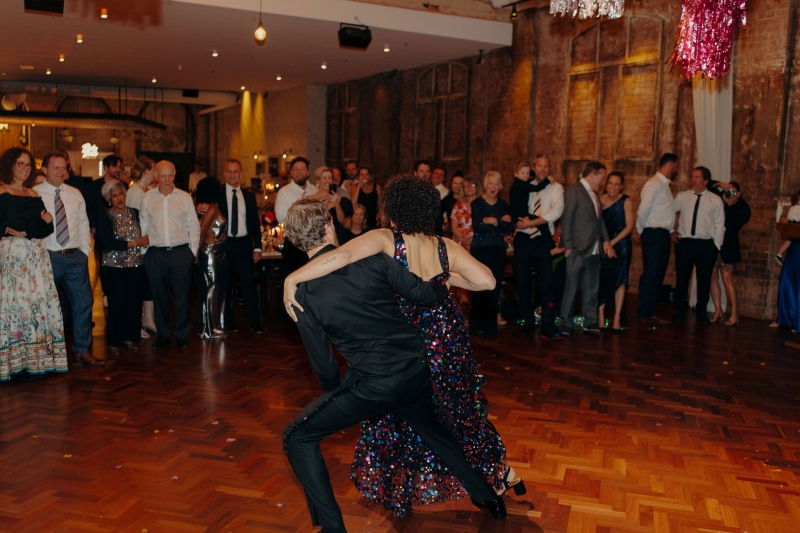 Even though Jillian and John have both lived in Brisbane for years, neither grew up there so their guest list was pretty varied. Their remedy to this? A dance lesson from Anna Johnston from Mad Dance to kick off the reception! “We wanted to do something that broke the ice early on in the night and helped everyone get at ease with each other. Our dance teacher got all gussied up in this epic disco costume and taught everyone a few moves to “We Are Family” right after cocktail hour and before dinner. The idea was that everyone had to do the choreography whenever they heard the song come on later in the night. It was a heap of fun, and everyone loved it!”