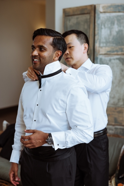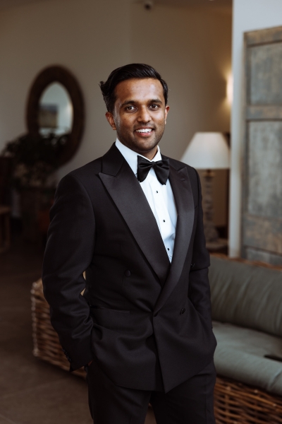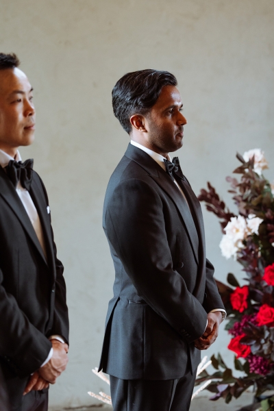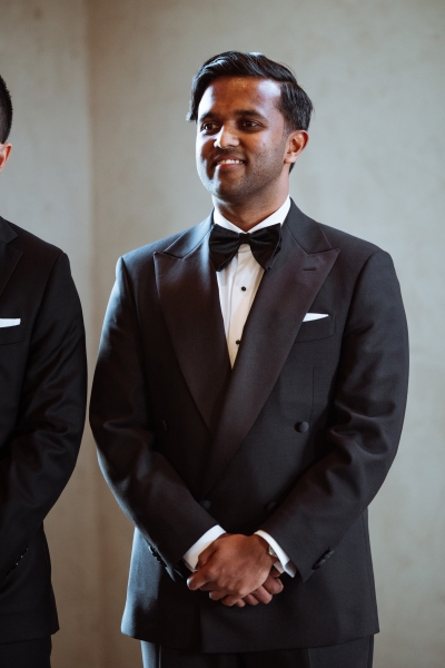 Working with P. Johnson, Yasith created a beautiful custom suit for the day. “He wanted a classic double-breasted tuxedo look, and P. Johnson was able to make a gorgeous suit that was both traditional and modern.”