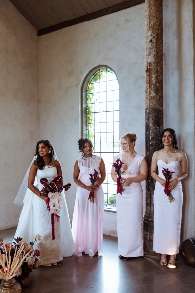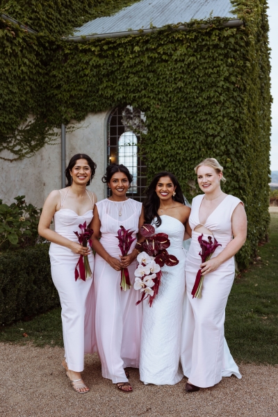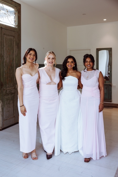 Dipti’s wedding party was filled with her sister and her friends from school and university, all wearing beautiful baby-pink dresses from Shona Joy.