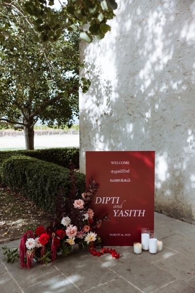 Set against the rolling hills of the Yarra Valley, Dipti and Yasith gathered their loved ones at The Stones of the Yarra Valley for a wedding that honoured heritage and family. With a flower-filled Poruwa ceremony rich with blessings to a reception that began with every guest on the dance floor, each detail of the day was designed to prioritise connection and joy. Cultural details were layered throughout; in the music, the ceremony, the styling and the language shared across signage.