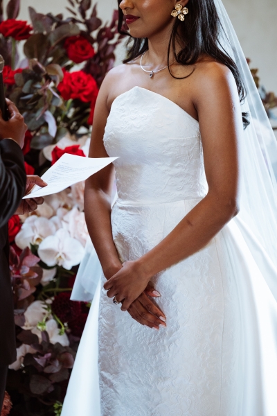 For herself, Dipti wore a stunning custom gown by Luci di Bella. “I went to several bridal design houses, but Luci was definitely the most personable and understanding of my design concept. I wanted my dress, particularly once the overskirt was removed after the ceremony, not to feel like a bridal gown and be simple and modern. Luci was able to make the most beautiful dress that met all of my requests!” she explained.