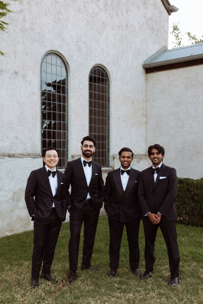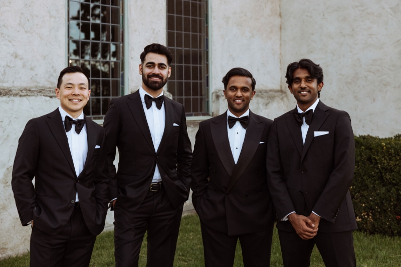 His wedding party was made up of his brother and friends from school, dressed to the nines in custom suits from InStitchu.