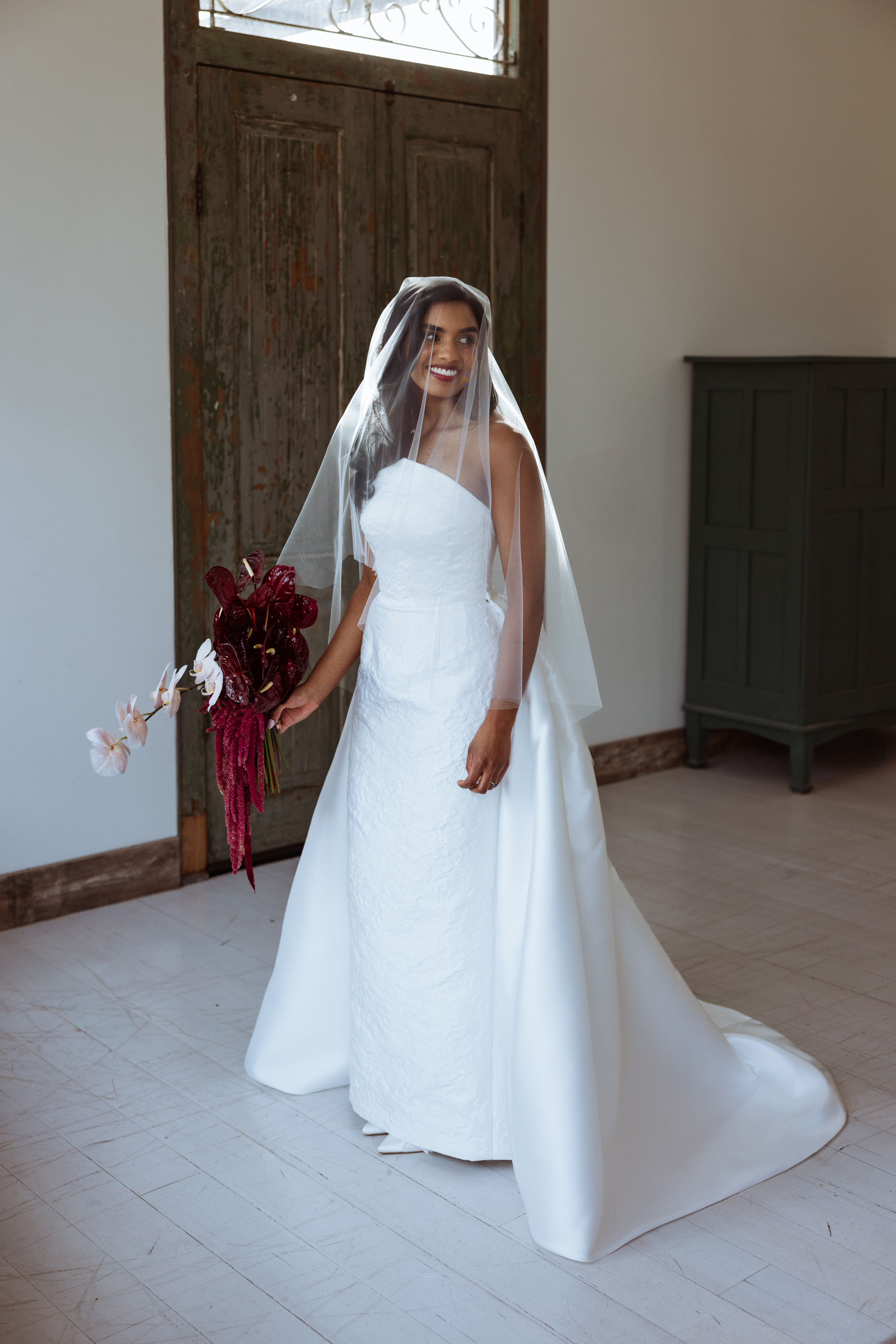 We'll never get tired of seeing couples do things their own way, and Alex and Chris leaned all the way in. Their winter micro wedding in The Rocks was softened by grey skies and brought to life with the richest pops of red, from roses to heels to the Rocks themselves!⁠