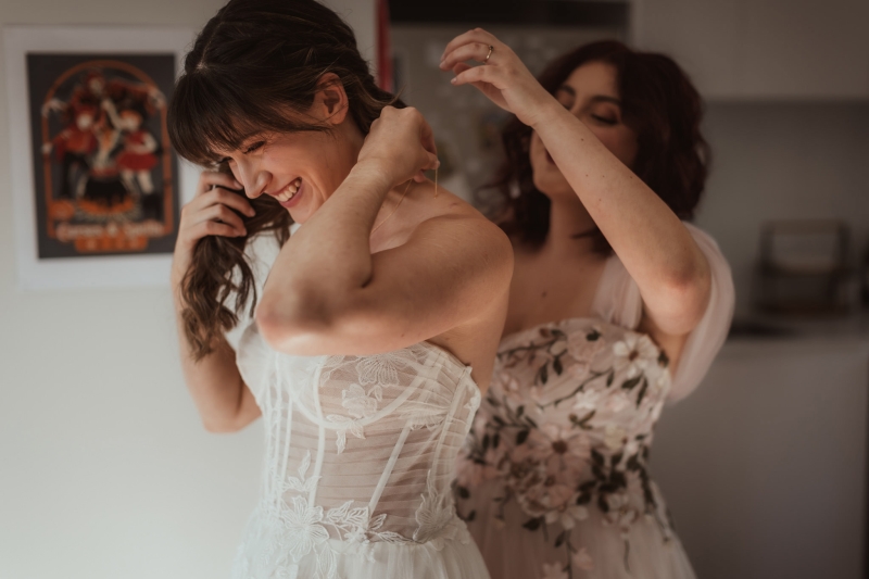 Fiona and Bobby handled all things photography, and Jeanne and Beth absolutely loved every moment of their work. “They really went above and beyond to make the process fun and joyful (when photography for me and many others can often be a daunting part of the experience), and all the photography is absolutely stunning. We wanted our photos to feel genuine, warm, and candid, and Fi and Bobby captured that energy so beautifully. They created such a fun and comfortable environment, where no one felt awkward around the camera; they had prompts and games that made everything flow naturally and made it a really intimate but lighthearted experience,” Beth shared.
