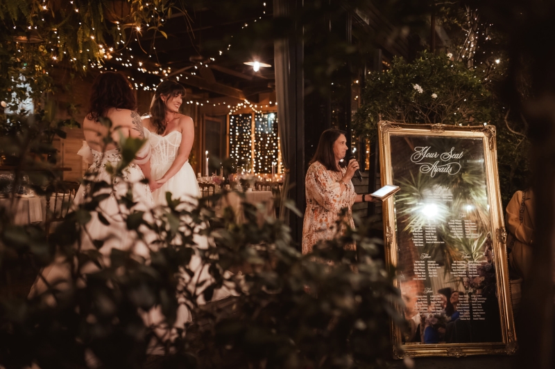 The best part of planning this enchanting wedding? For Jeanne and Beth, it was spending that time together, collecting inspiration and creating the vision board. “We spent many nights snuggled up on the couch together, looking through styling guides and vision boards and imagining what we want the day to look and feel like. Seeing all of this come together on the day and seeing that all the planning paid off and we captured that magical, enchanted forest energy we were hoping to create was so special.”