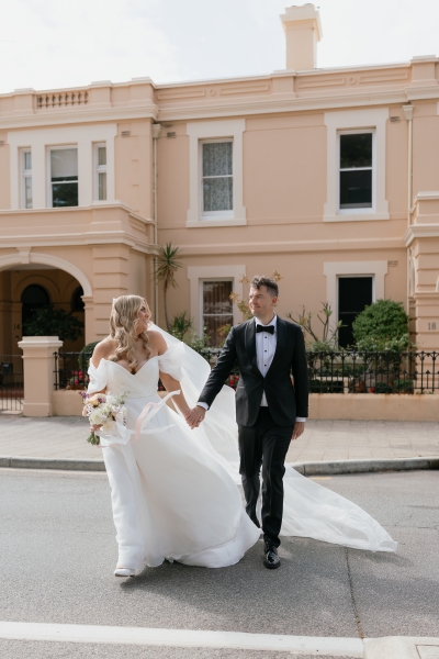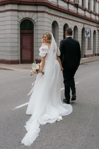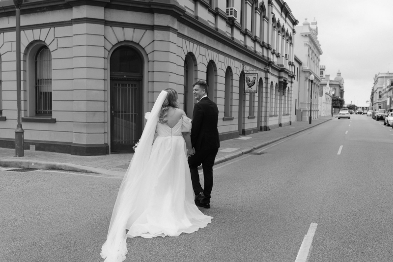 Leah Goodman Photography captured the romance of Sarah and Brendan’s wedding alongside them. “I had found Leah’s work online and had followed her Instagram for some months before we started wedding planning, and really fell in love with her true tone photos with an effortless style. She was so much fun to work with, giving us gentle prompts as we wandered around Fremantle taking our portraits. We completely trusted Leah to know what to capture and where, and for many of the photos we didn’t even realise how they would turn out until we woke the next day to a huge sneak peek of photos delivered by Leah in record time,” Sarah explained.