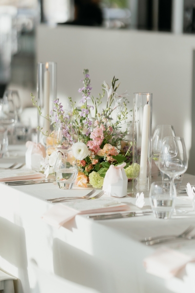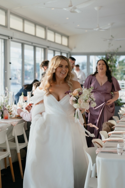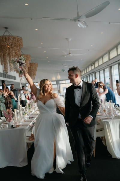 Every single vendor on their dream team blew their expectations out of the water – this wedding truly wouldn’t have been the same without the whole team. “In addition to the wow factor brought by our photographer, florist and celebrant mentioned above we were very impressed with all the staff at Bathers Beach House especially our venue coordinator, Bec Edmondson. Bec was so relaxed about all of our requests for the day and executed our décor plans to perfection. The food, which included grazing boards, seated entrees and mains, was delicious. The pork belly, in particular, got a lot of praise from our guests.