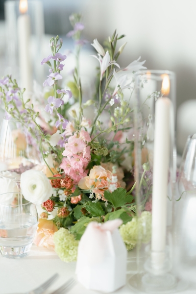 “The floral towers Jane created for our ceremony were the absolute standouts of the day, and it was so overwhelming to see them for the first time as I walked down the aisle towards Brendan. Jane also included the most beautiful roses grown from her own garden. A few other details we added to the flowers were a swan planter vase and flower baskets for our two eldest flower girls.
