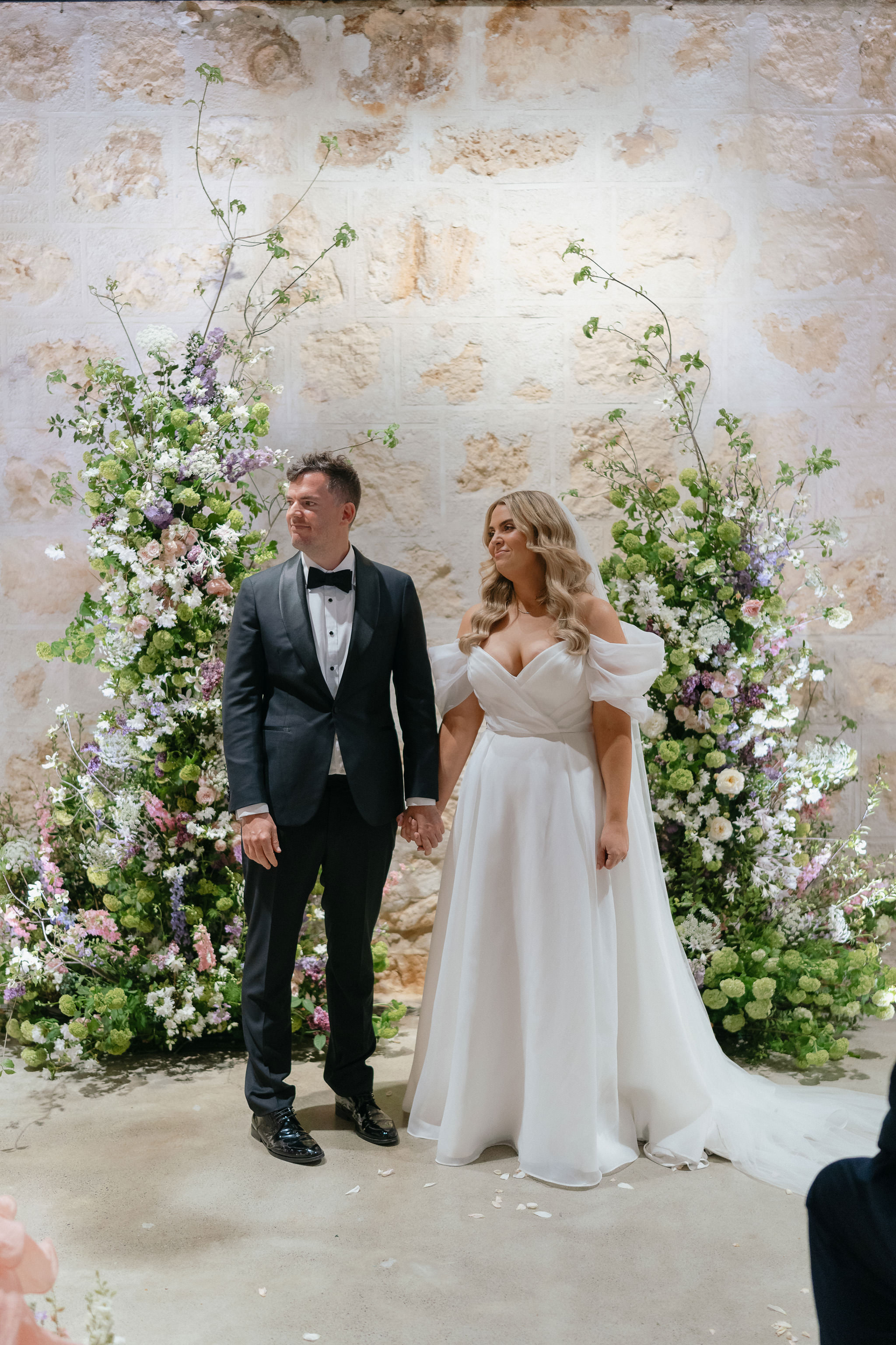 Photographer: @hayley.morgan.weddings / Engagement Ring: @simoncurwoodjewellers / Cinematographer: @Lovin.films / Venue: @Irongateestatewines / Ceremony Officiant: @Kahlia.wilkin.celebrant / Hair & Makeup Artist: @Lynseytarrant_bridal / Reception Venue: @willietheboatman / Reception DJ: #DanielAndaloro / Groom's Attire: @oscarhunttailors⁠